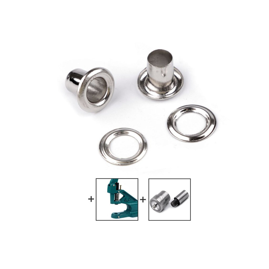 Kovové průchodky zpevní dírky v materiálu a umožní provlečení šňůry nebo gumy. Využijete je při výrobě a zdobení tašek, kabelek nebo batohů. Skládají se ze dvou částí. Při styku s vodou můžou rezivět.