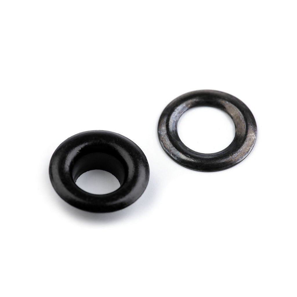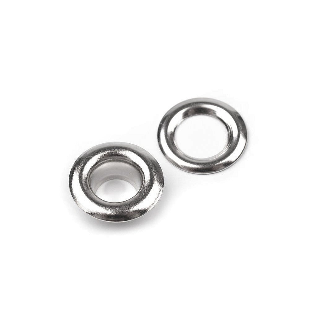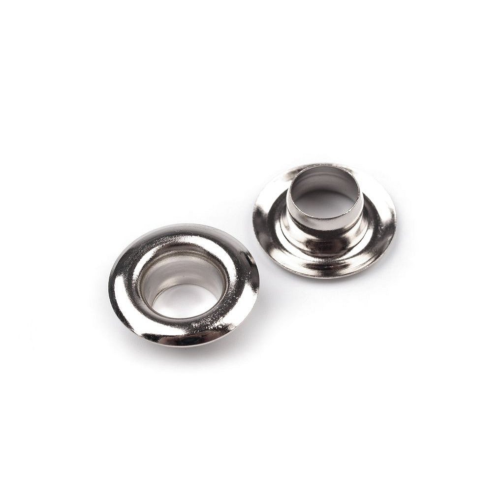 Průchodka umožňuje provlečení šňůry nebo gumy. Skládá se ze dvou částí. Nereziví. K naražení průchodek slouží piston a lis, který najdete pod kódem 630344.