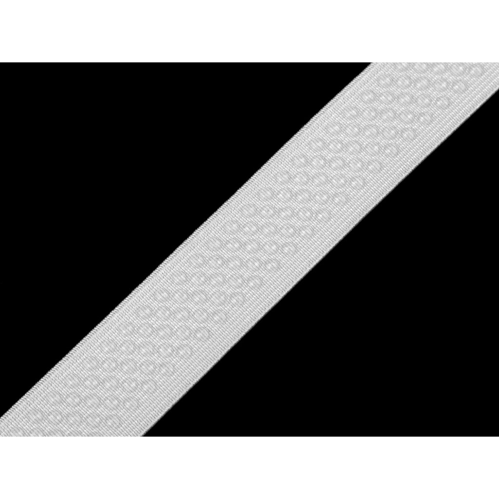 Pruženka je z jedné strany pokrytá silikonovými tečkami, díky nim je protiskluzová. Využijete ji převážně na sportovní oblečení.