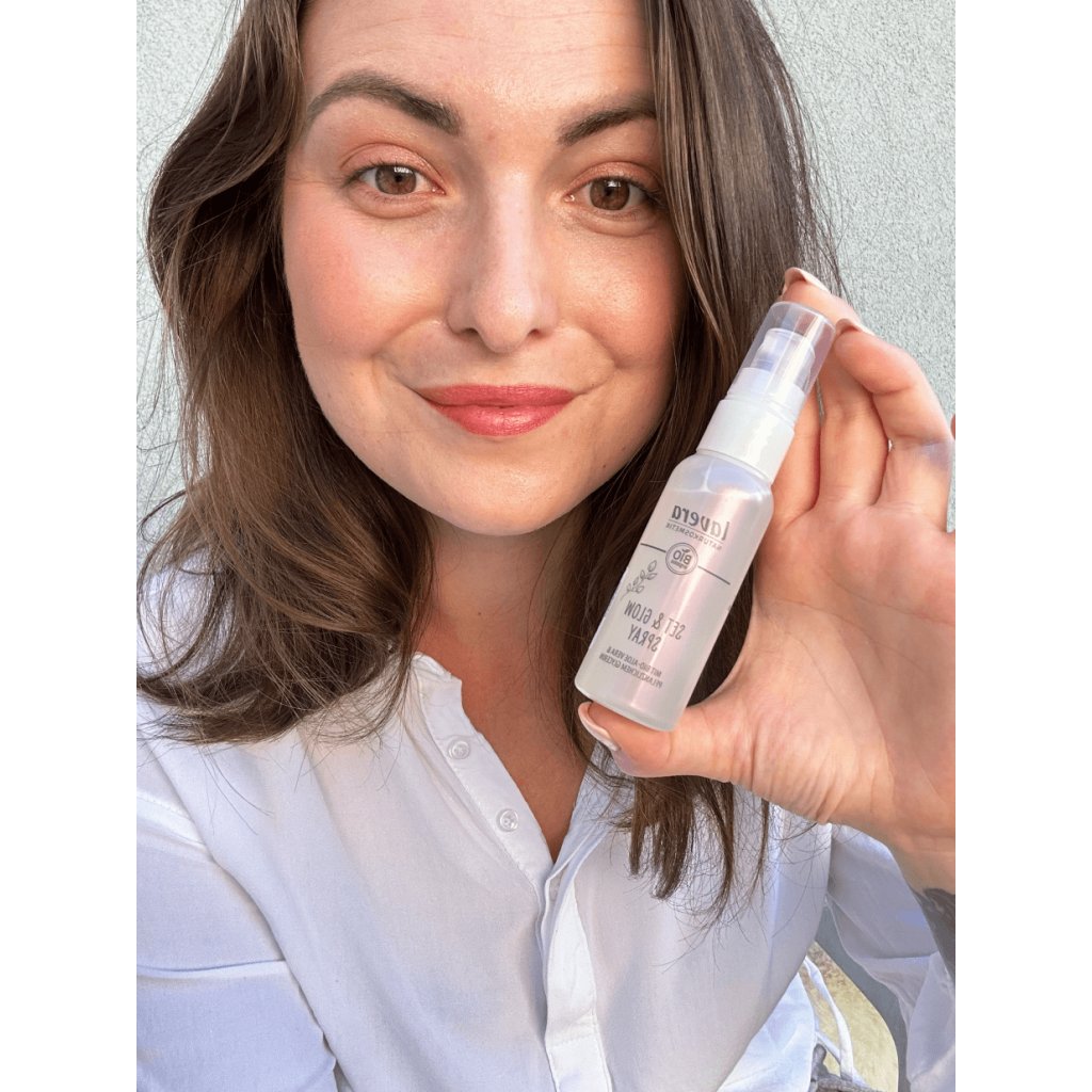 Lavera Set & Glow vám na tváři udrží úsměv i make-up. Fixační sprej od Lavery využijete pro každodenní fixaci make-upu, pudru i dalších produktů, kterým prodlouží bezchybný vzhled. Vaši pleť pak zanechá rozjasněnou a hydratovanou díky BIO aloe vera a rostlinnému glycerinu. Na pleti nedělá fleky ani suché šupiny. Lehoučký sprej je vhodný pro všechny typy pleti – je dermatologicky testovaný, veganský, a samozřejmě bez obsahu silikonů, minerálních olejů a mikroplastů. Štempl NaTrue a Vegan Society mluví za vše.