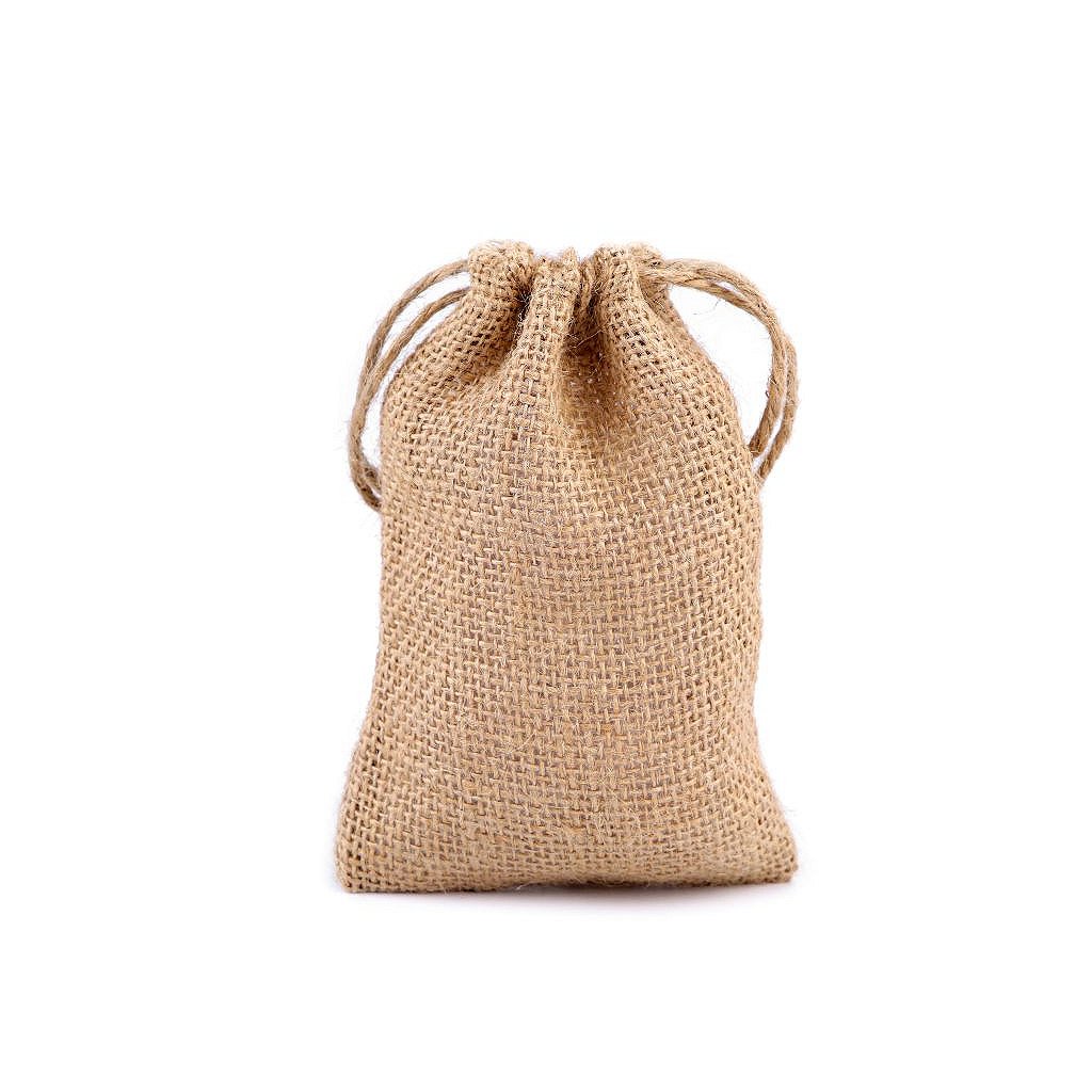 Malý jutový pytlík se snadno uzavírá pomocí dvou stahovacích šňůrek.