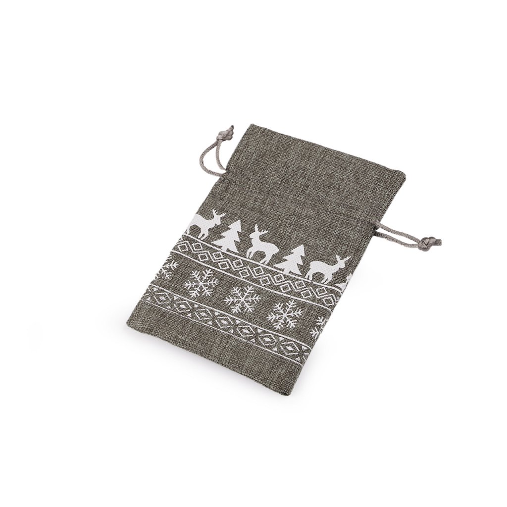 Pytlík s vánočním motivem svým zpracováním imituje jutu. Je pevný a kvalitní, pohodlně se uzavírá pomocí stahovacích saténových šňůrek. Můžete ho použít na dárky nebo ho naplnit mikulášskou nadílkou. Dá se naaranžovat jako vánoční dekorace.