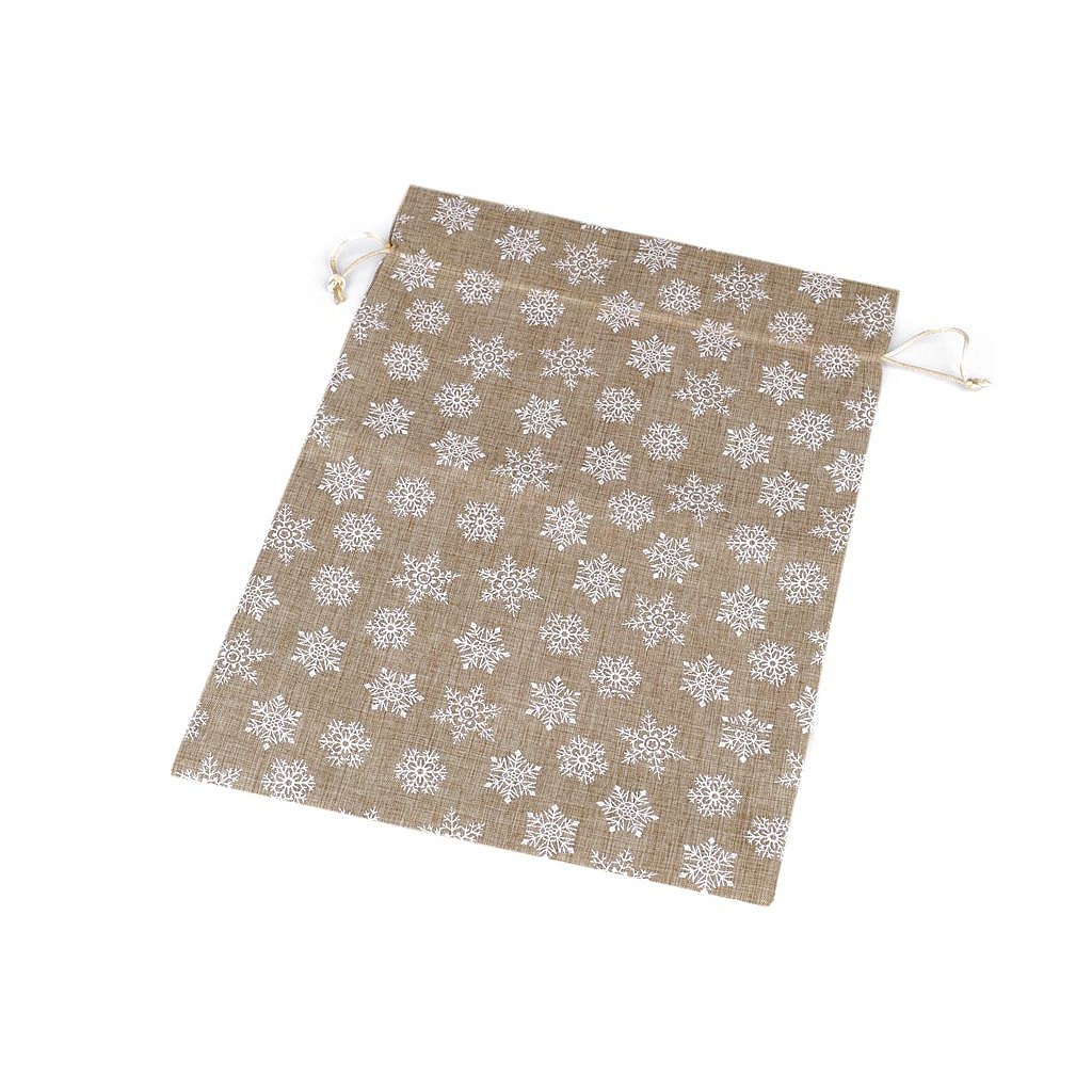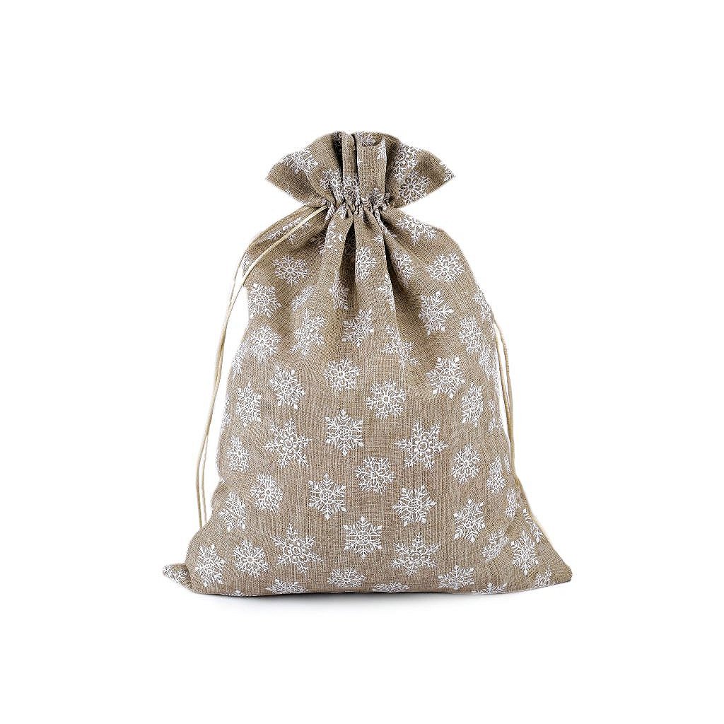 Vánoční dárkový pytlík vločky s glitry velký 30x40 cm imitace juty