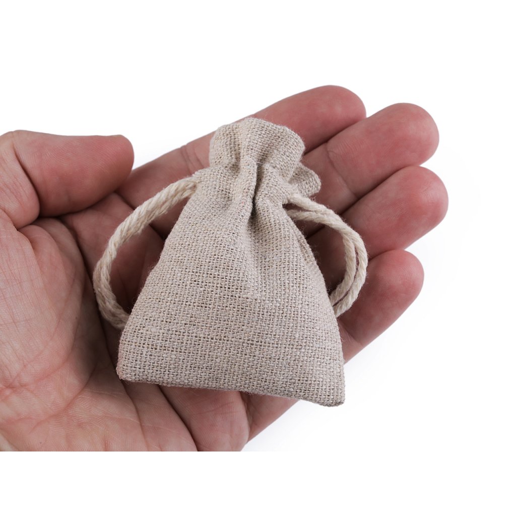 Malý lněný pytlík je kvalitní a pevný. Snadno se uzavírá pomocí dvou bavlněných stahovacích šňůrek. Po zašpinění ho můžete prát ve vlažné vodě.