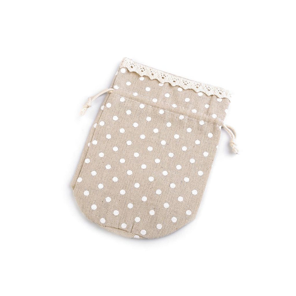 Dárkový pytlík měšec 13,5x18,5 cm lněný s puntíky a krajkou