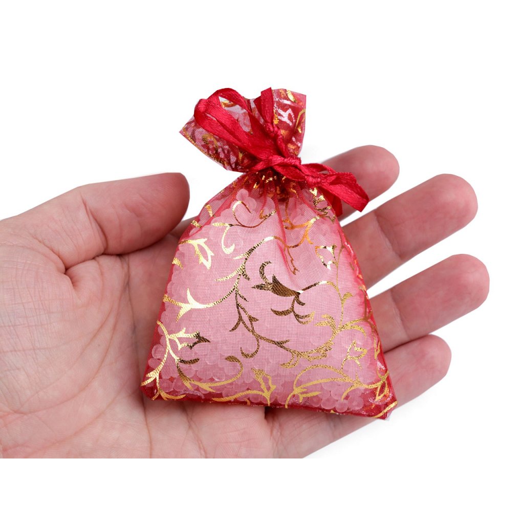 Dárkový pytlíček o velikosti cca 70 x 100 mm z kvalitního materiálu. Pytlíky jsou dodávány v balení po 10 kusech. Můžete do něj zabalit malé dárky pro své blízké na narozeniny i na Vánoce. Bude perfektní náhradou klasického papíru. Pytlík se stahuje stuhou a je ozdoben zlatými ornamenty.