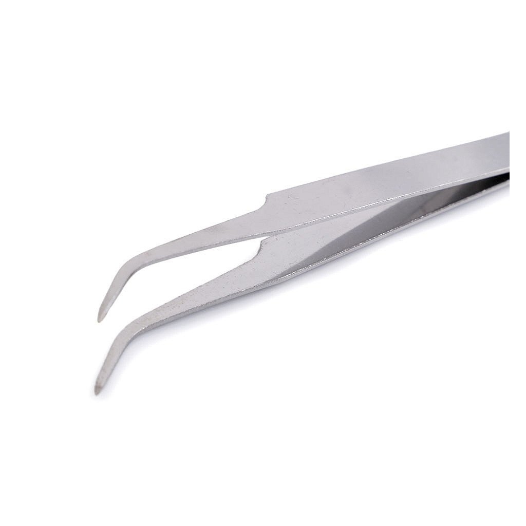 Zahnutá kovová pinzeta je vhodná na většinu drobných prací.
