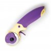 Řezací kolečko na patchwork.Kruhový řezač má velmi pohodlnou měkčenou rukojeť umožňující komfortní stříhání jak pro leváky tak pro praváky. Nechybí pojistka k zablokování zasunuté nebo vysunuté čepele. Lze použít pro pravou i levou ruku. Průměr kolečka 45mm. Kolečko je z velmi kvalitní oceli s karbonem- dlouhá životnost.