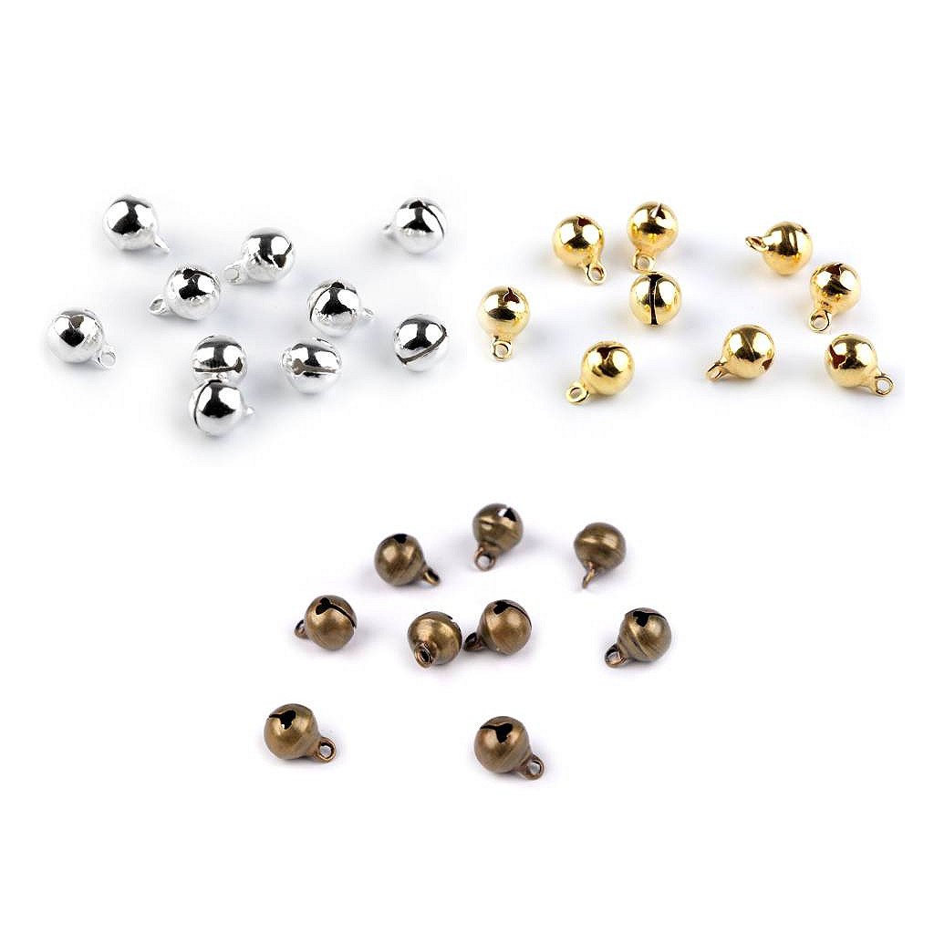 Drobné kovové rolničky standardní kvality, určeny pouze k dekoračním účelům - například na vánoční věnce. Zvoní tlumeněji. Průměr rolniček je cca 7,6 mm, může se mírně lišit. Průvlek jsou 2 mm. Celková velikost rolničky včetně očka je 11 mm.
