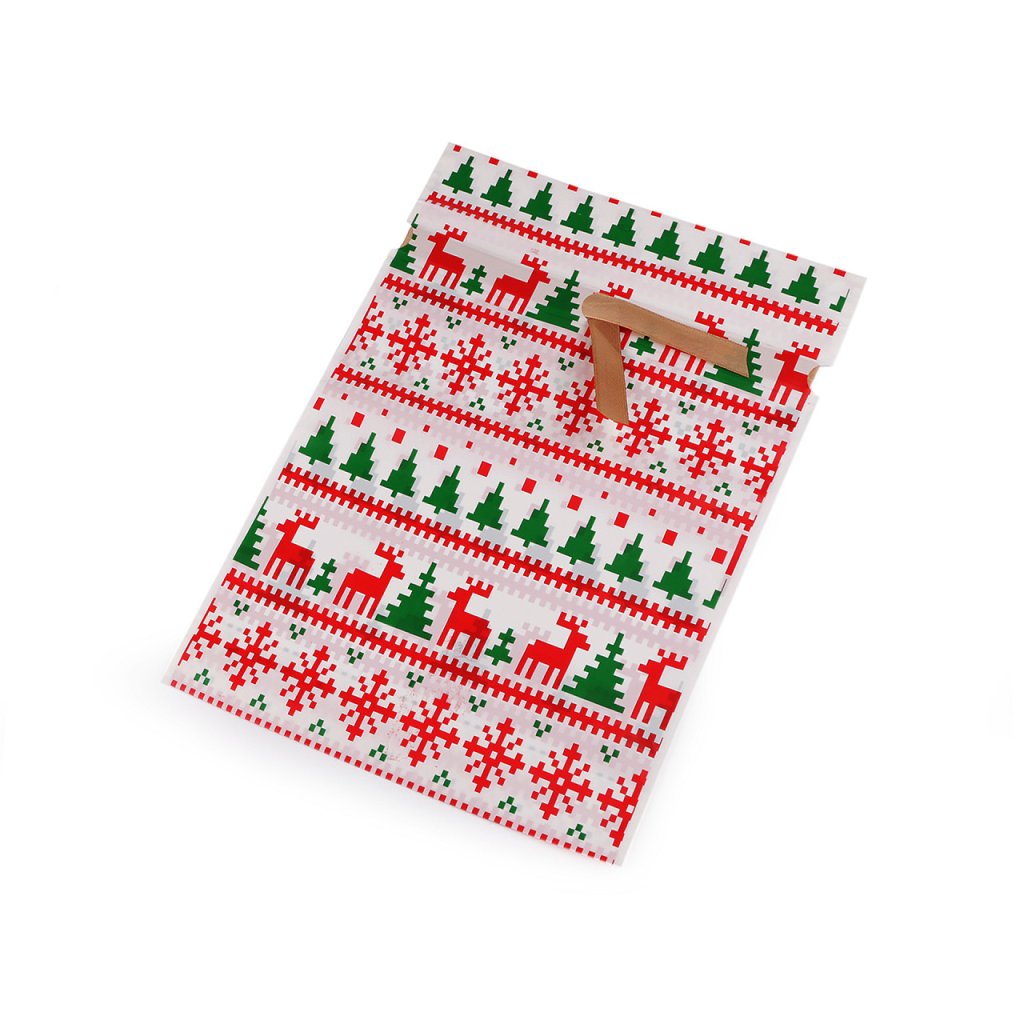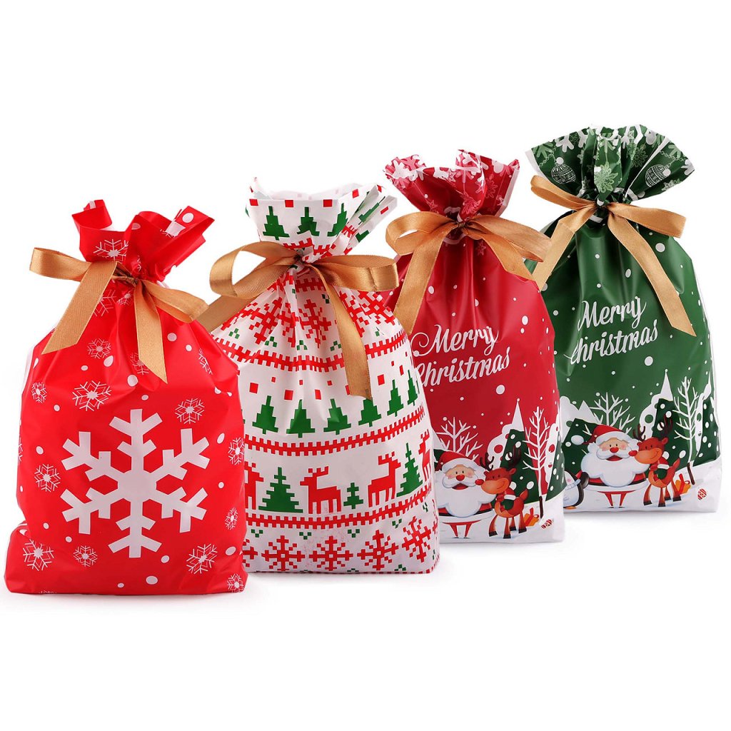 Velké stahovací sáčky s vánočními motivy se skvěle hodí na dárkové balení různých balených pochutin, ale také třeba kosmetiky, svíček a jiných maličkostí. Stahují se pomocí saténové stuhy.