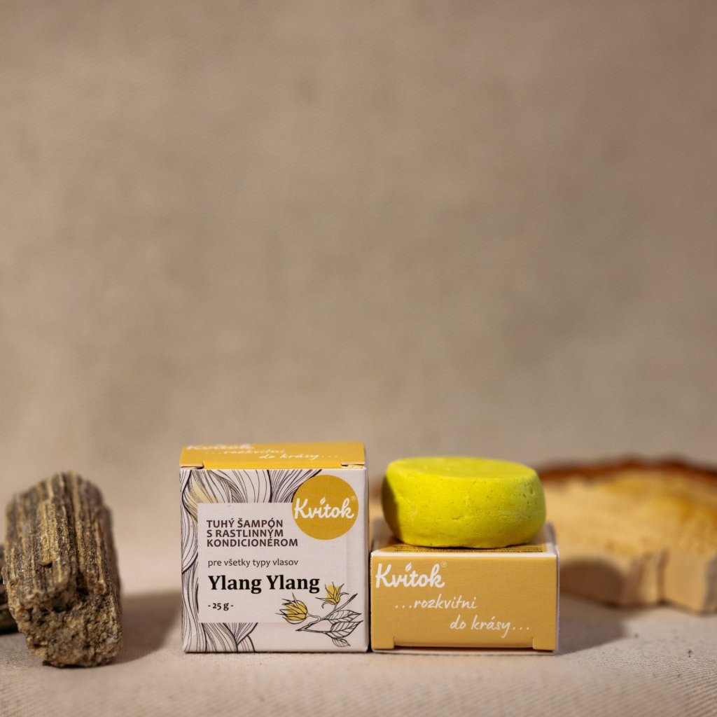 Kvitok Tuhý šampon s kondicionérem pro světlé vlasy Ylang Ylang 25 g - krásně pění