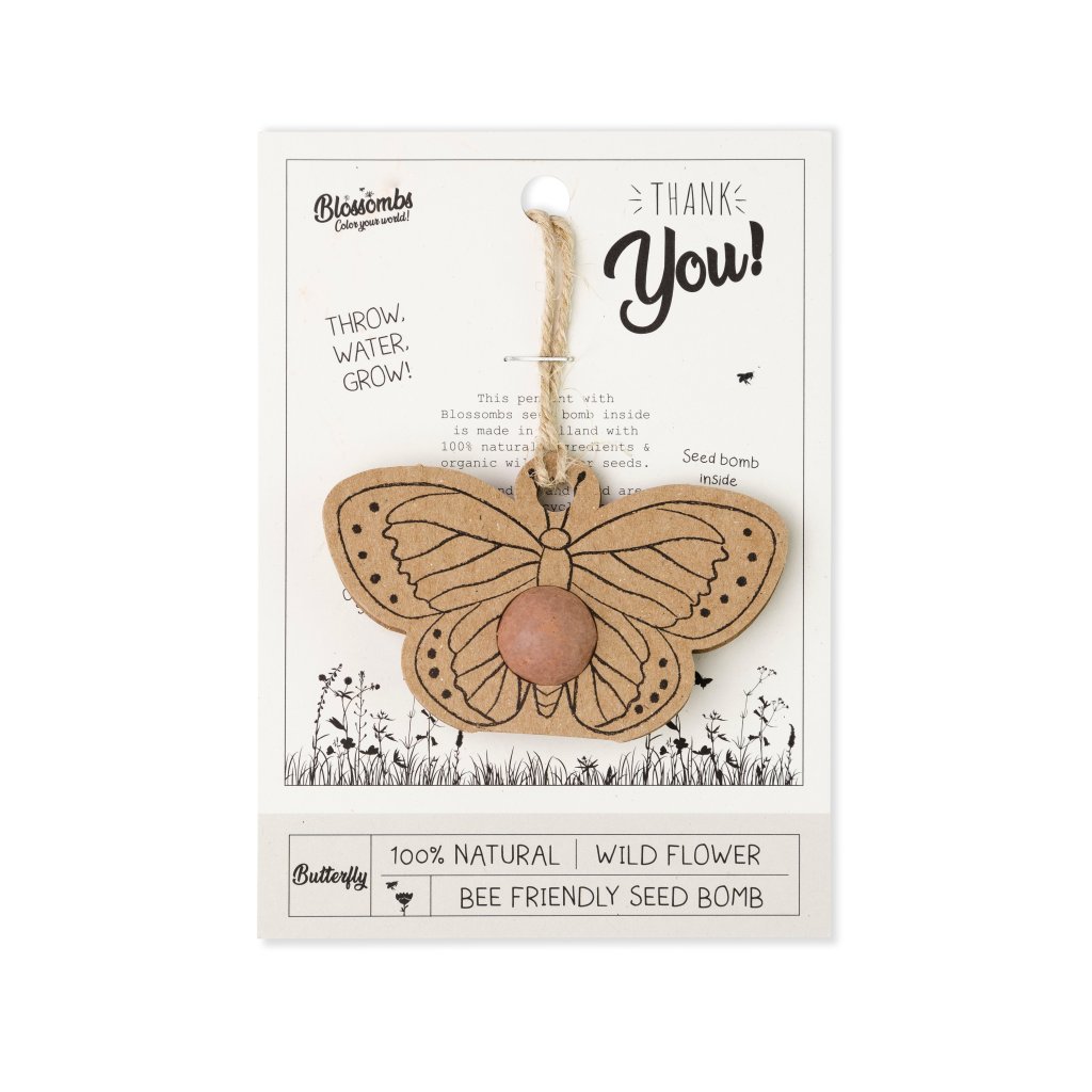 Blossombs Semínková bomba - Dárková dekorace "Děkuji" - Motýl (1 ks) - originální a praktický dárek v jednom