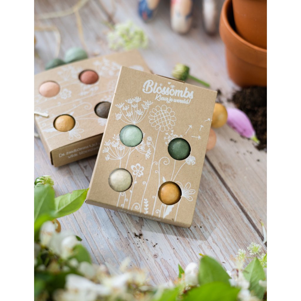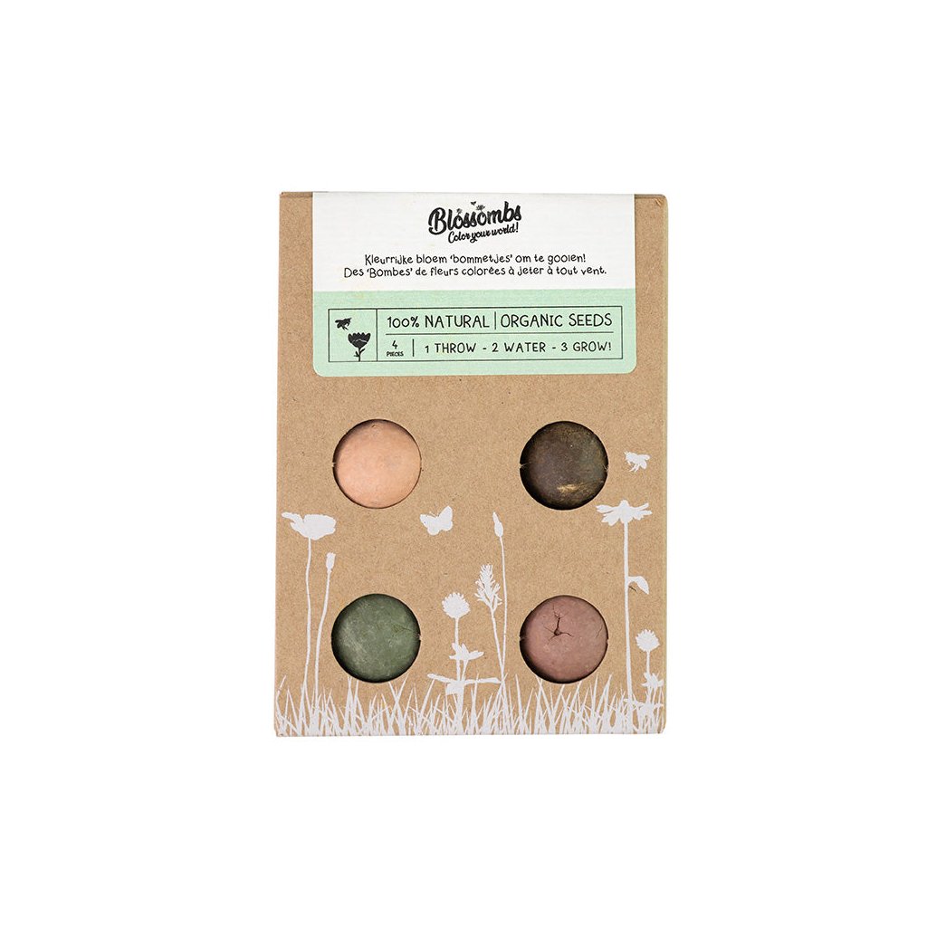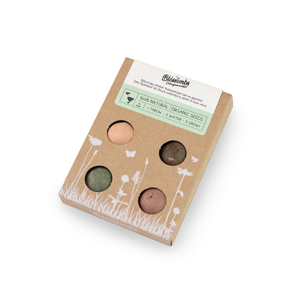 Rádi (si) nadělíte dárky, které mají skutečný smysl – pro vás i pro přírodu? Pak jsou 100% přírodní semínkové bomby trefa do černého, tedy vlastně pestrobarevného. :) Do této luxusní dárkové sady ukryli v nizozemském Blossombs 4 jílové kuličky se semínky BIO divokého lučního kvítí, třeba vlčí mák, chrpu nebo jetel. Stačí je položit do měkké hlíny a po vykvetení vykouzlí úsměv vám a poskytnou azyl a potravu zvědavým včelím, čmeláčím nebo třeba motýlím sosáčkům.