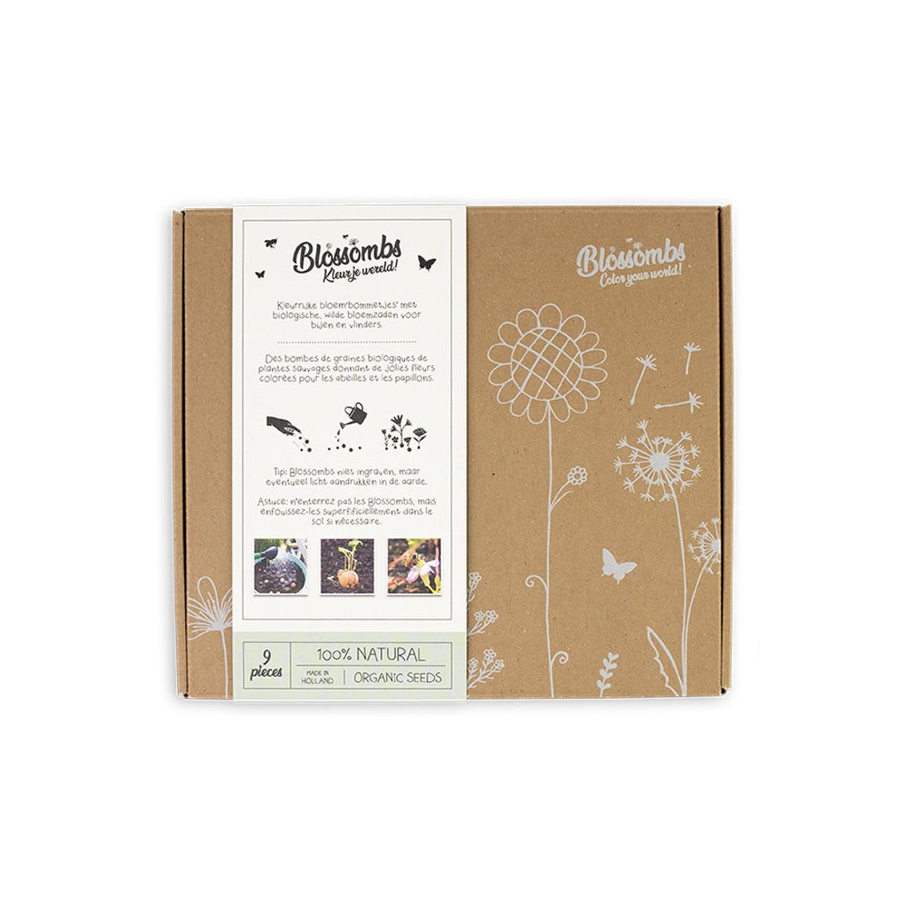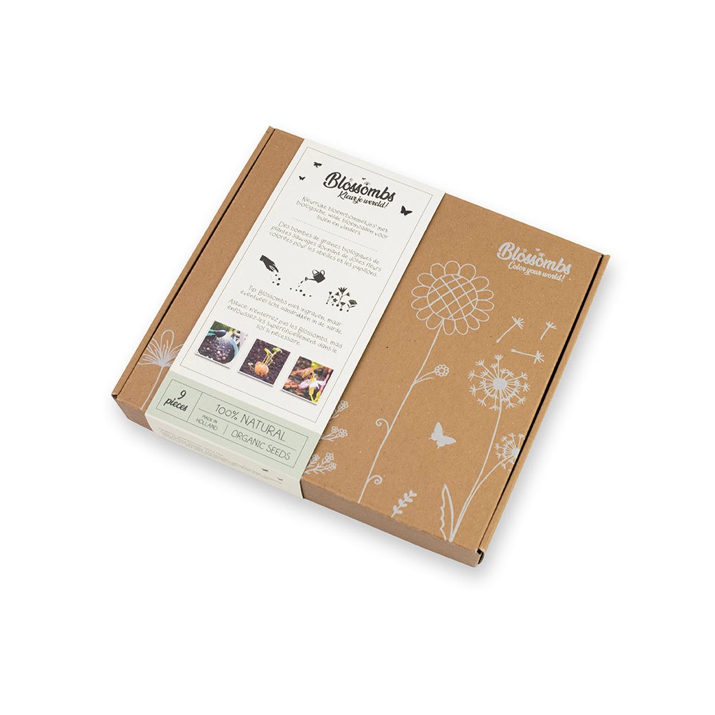 Rádi (si) nadělíte dárky, které mají skutečný smysl – pro vás i pro přírodu? Pak jsou 100% přírodní semínkové bomby trefa do černého, tedy vlastně pestrobarevného. :) Do této luxusní dárkové sady ukryli v nizozemském Blossombs 9 jílových kuliček se semínky BIO divokého lučního kvítí, třeba vlčí mák, chrpu nebo jetel. Stačí je položit do měkké hlíny a po vykvetení vykouzlí úsměv vám a poskytnou azyl a potravu zvědavým včelím, čmeláčím nebo třeba motýlím sosáčkům.