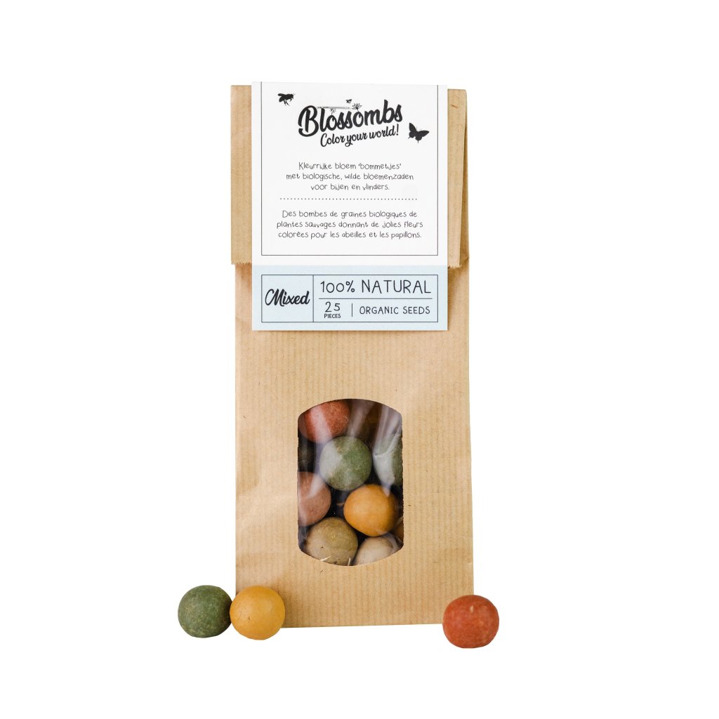 Rádi (si) nadělujete dárky, které mají skutečný smysl? Pak jsou 100% přírodní semínkové bomby trefa do černého, tedy vlastně pestrobarevného. :) Do nenápadného papírového sáčku ukryli v nizozemském Blossombs 25 jílových kuliček se semínky BIO divokého lučního kvítí jako je vlčí mák, kopretina, řebříček, chrpa nebo jetel. Stačí je položit do měkké hlíny a po vykvetení vykouzlí úsměv vám a poskytnou azyl a potravu zvědavým včelím, čmeláčím nebo třeba motýlím sosáčkům.