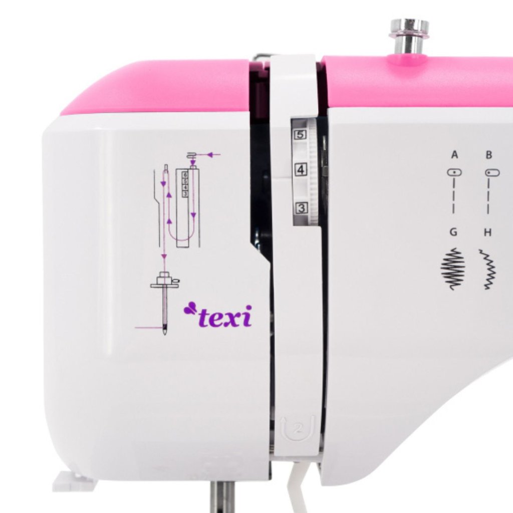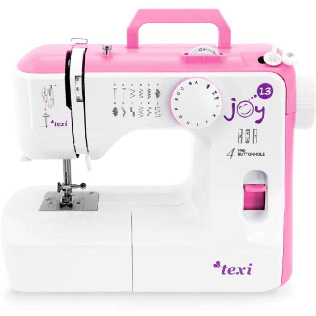 Mechanický šicí stroj Texi Joy 1301 Pink, 13 programů, poloautomatická knoflíková dírka, LED osvětlení. Vhodný i pro děti. Výkon motorku 70W.