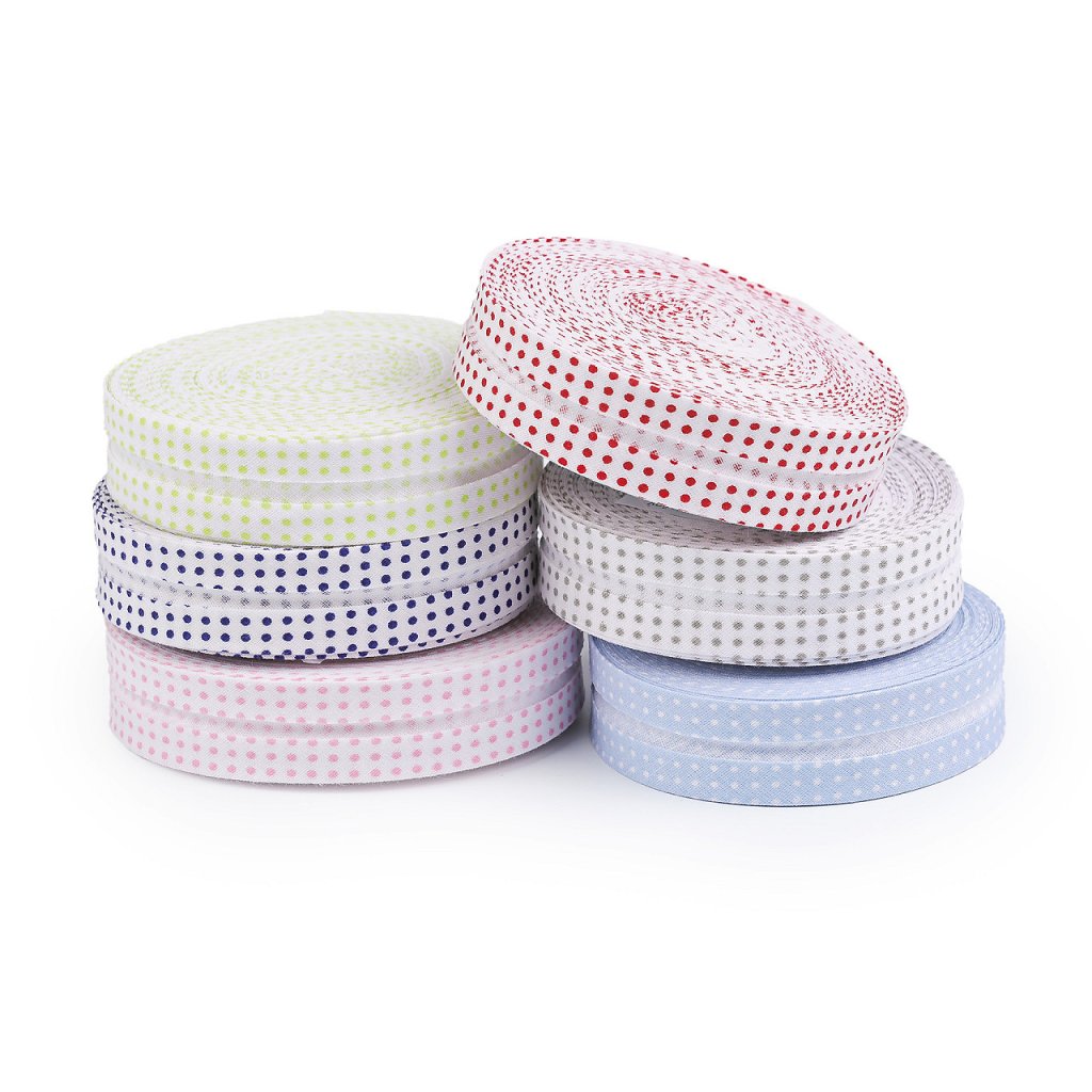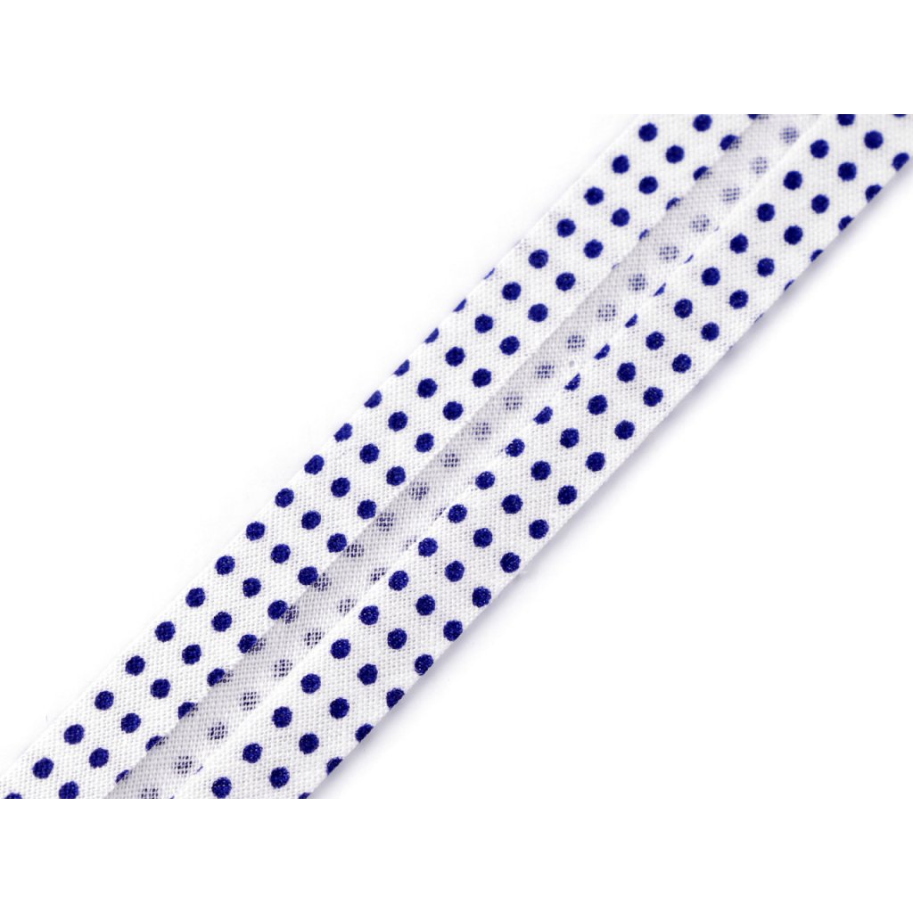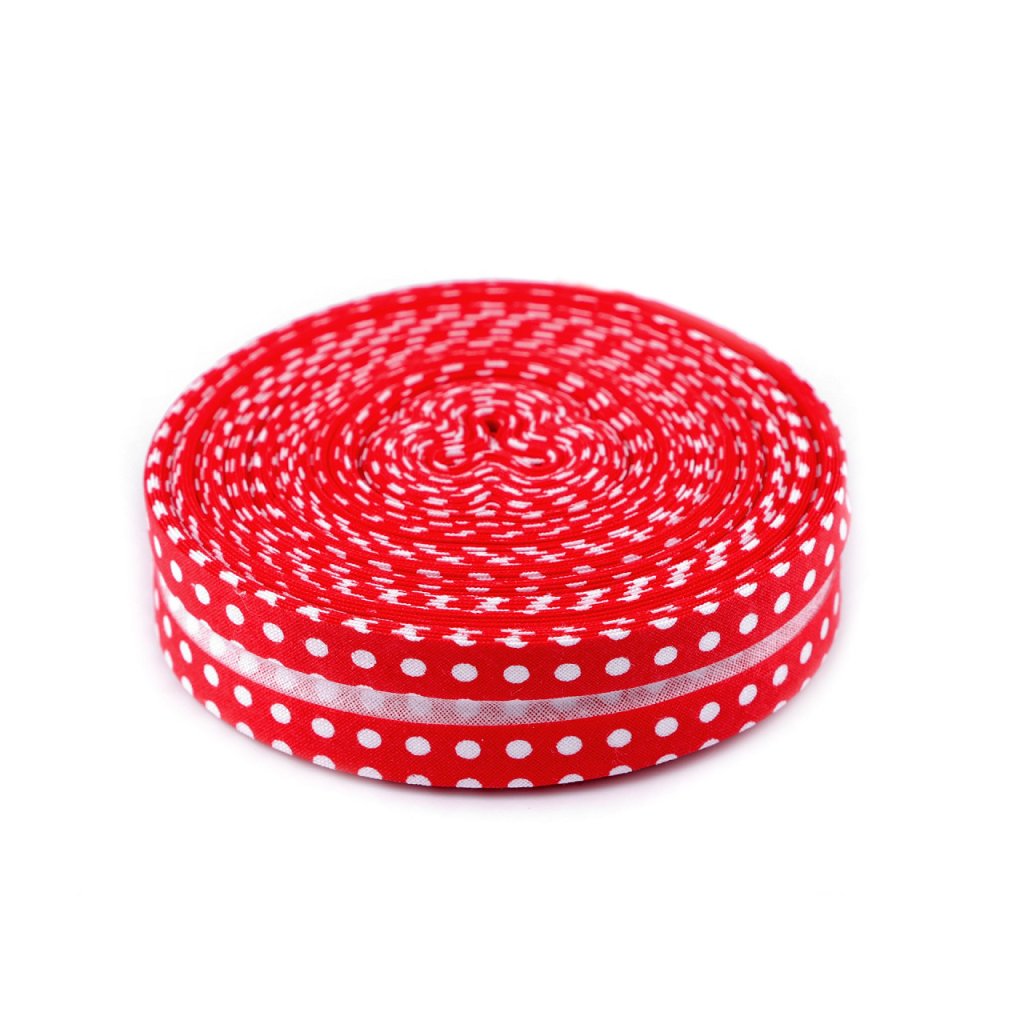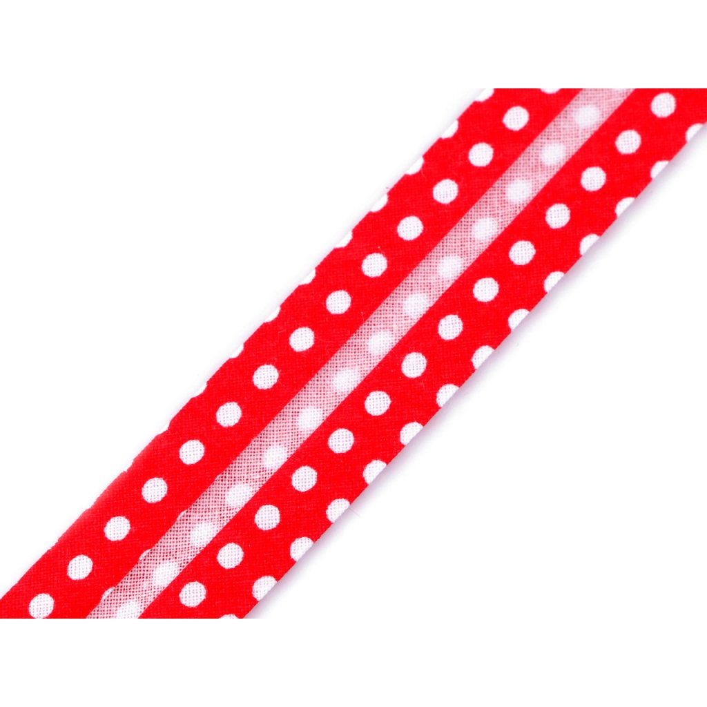Bavlněný šikmý proužek s různými motivy je pevný a zažehlený. Po našití má poloviční šíři tzn., že tento proužek bude mít po našití šíři 10 mm.