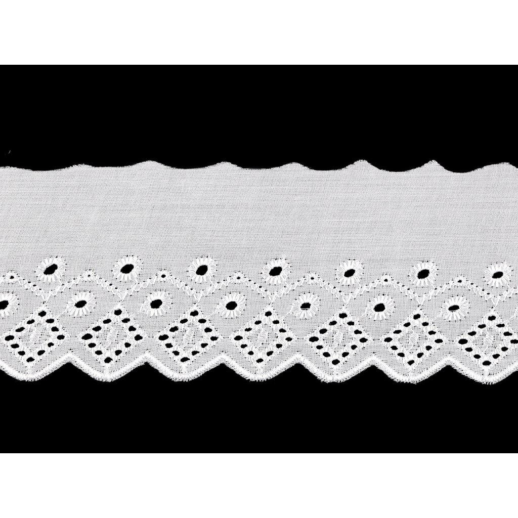 Madeira s dírkovanou výšivkou se hodí na dekoraci ubrusů, závěsů nebo ložního prádla. Rovněž je ideální pro zdobení oděvů, kde vytvoří originální a atraktivní detaily jako jsou lemy rukávů, sukní nebo výstřihů.