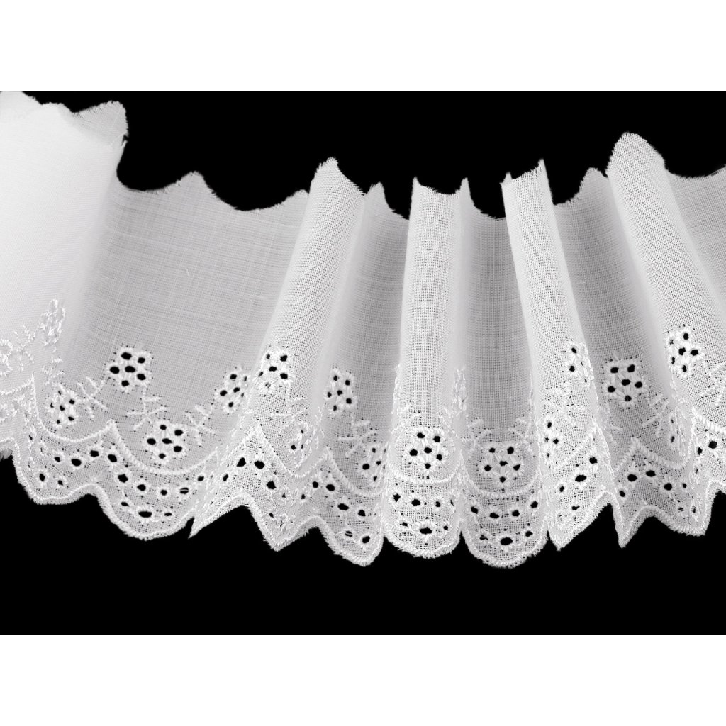 Madeiru s dírkovanou výšivkou s motivy květů můžete našít na oděvy, kde vytvoří atraktivní detaily jako jsou lemy rukávů, sukní nebo výstřihů. Dále je vhodná na ozdobení ubrusů, závěsů, záclon, dekoračních polštářů nebo ložního prádla.