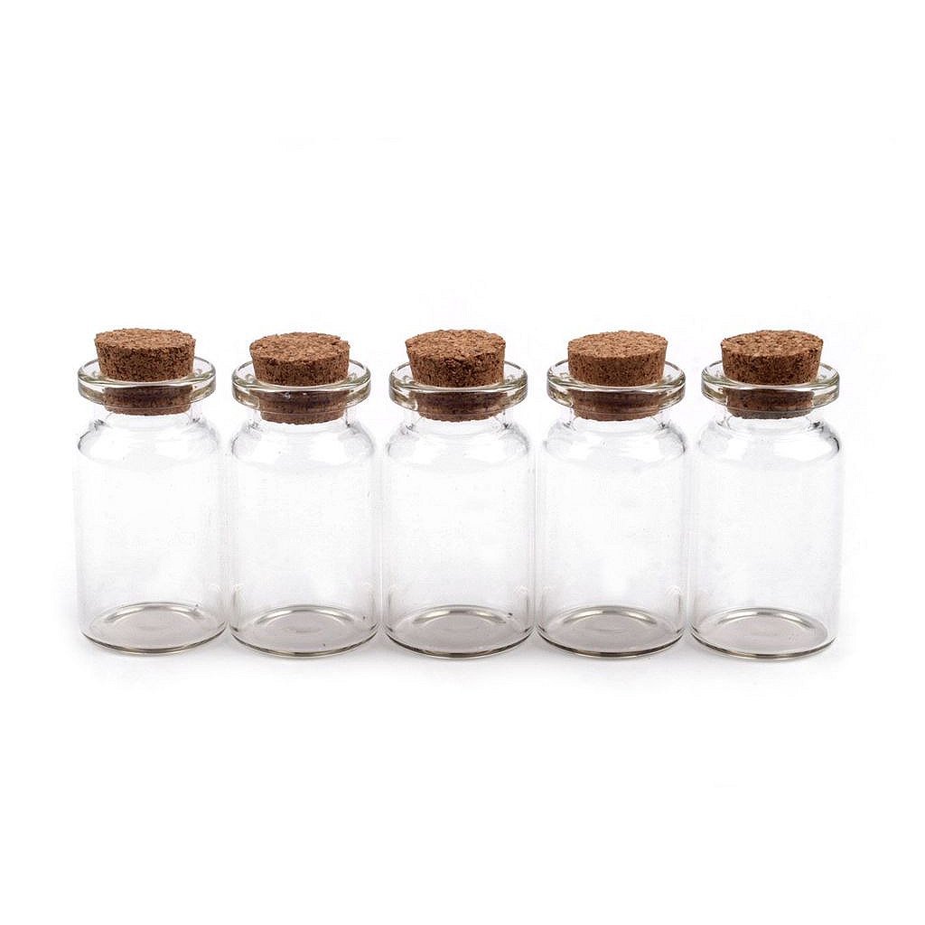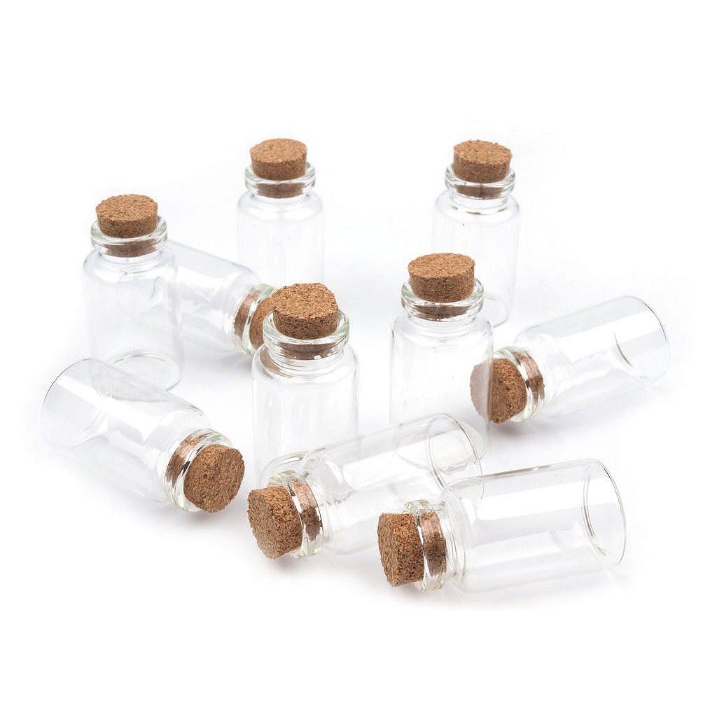 Velmi praktická skleněná lahvička vhodná na skladování drobných perliček jako je např. rocail. Díky průhlednosti dóziček jsou korálky v lahvičkách velmi přehledné. Korkový uzávěr pevně uzavře obsah dózy.
