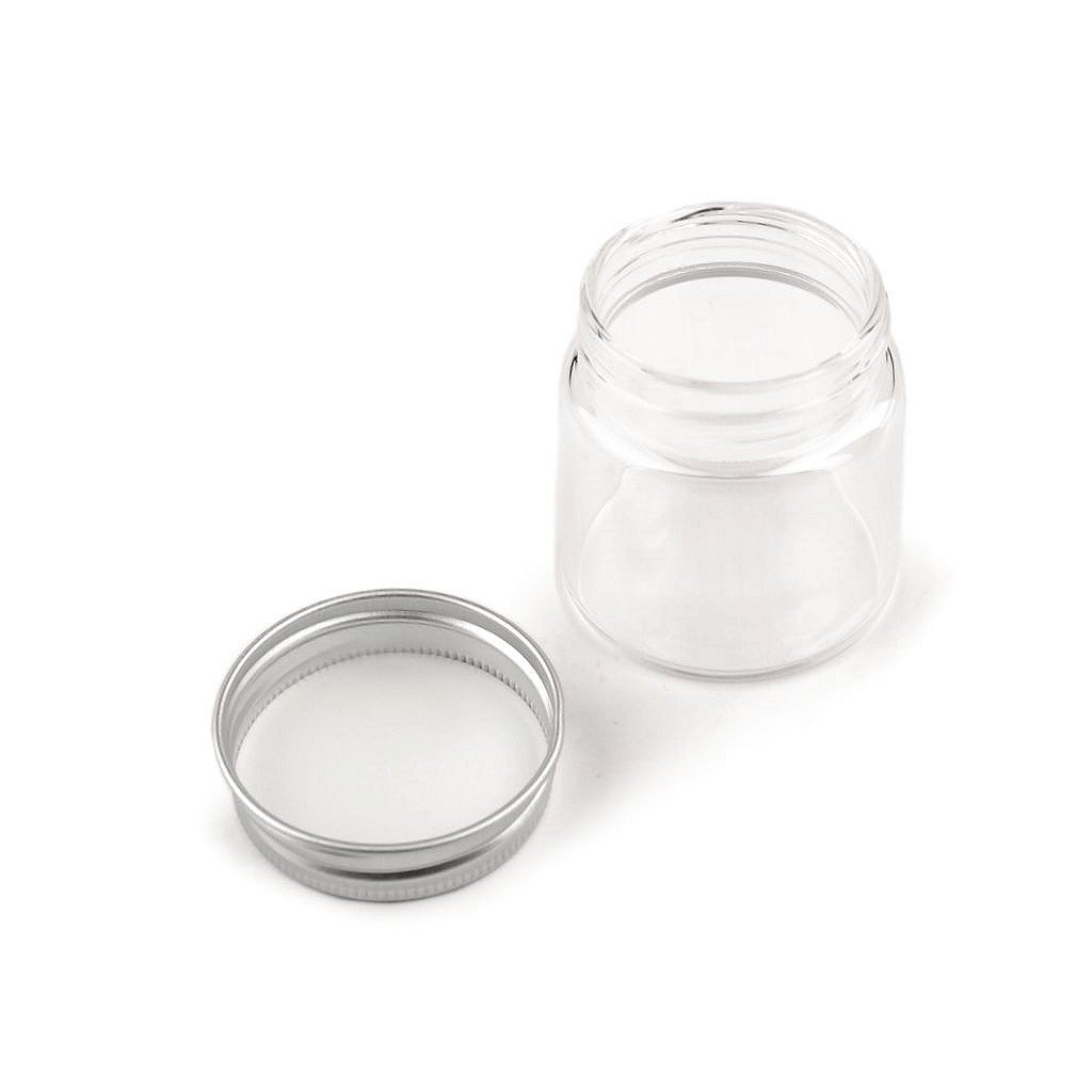 Skleněná dózička s kovovým uzávěrem má všestranné využití. Skvěle poslouží k praktickým i dekoračním účelům. Cestovatelé ji využijí k přenosu menšího objemu tekutin, krémů, šampónů apod. Ocení ji výrobci domácí kosmetiky nebo výrobci šperků z bižuterie, kteří si do nich mohou uložit různé bižuterní komponenty. Dózička ma šroubovatelný kovový uzávěr, který zamezuje vytékání tekutin. Hodí se k výrobě svíček.