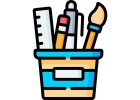 tužky, nůžky, pravítka, lepidla a zápisníky