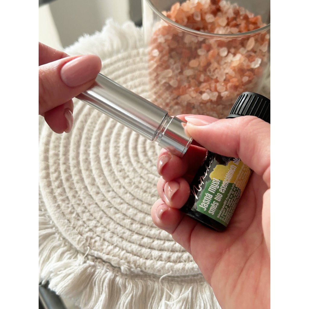 Aromaterapii doslova až pod nos vám přinese znovuplnitelný kovový inhalátor od české značky Natasha. Obsahuje krystalky himalájské soli, která funguje jako nosič pro éterický olej. Stačí tak pár kapek éteráčku, zašroubovat a přivonět kdykoli v průběhu dne. Nosánek vám polechtá svěží aroma pomeranče, peprmintu a rozmarýnu, které se v kombinaci s himalájskou solí postará o povzbuzení mysli, zahnání únavy a lepší koncentraci. Pokud intenzita vůně poleví, jednoduše dokápnete olejíček, a když vám přes nos přelítne jiná vůně éteráčku, stačí vyměnit himalájskou sůl a přidat pár kapek nového olejíčku. A takhle díky udržitelnému obalu třeba až donekonečna – bez jediného kousku odpadu. :)