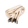 Plochá oděvní šňůra vám usnadní práci, na obou stranách má kovovou koncovku. Délka koncovek je 2,4 cm, mají průměr 0,5 cm.