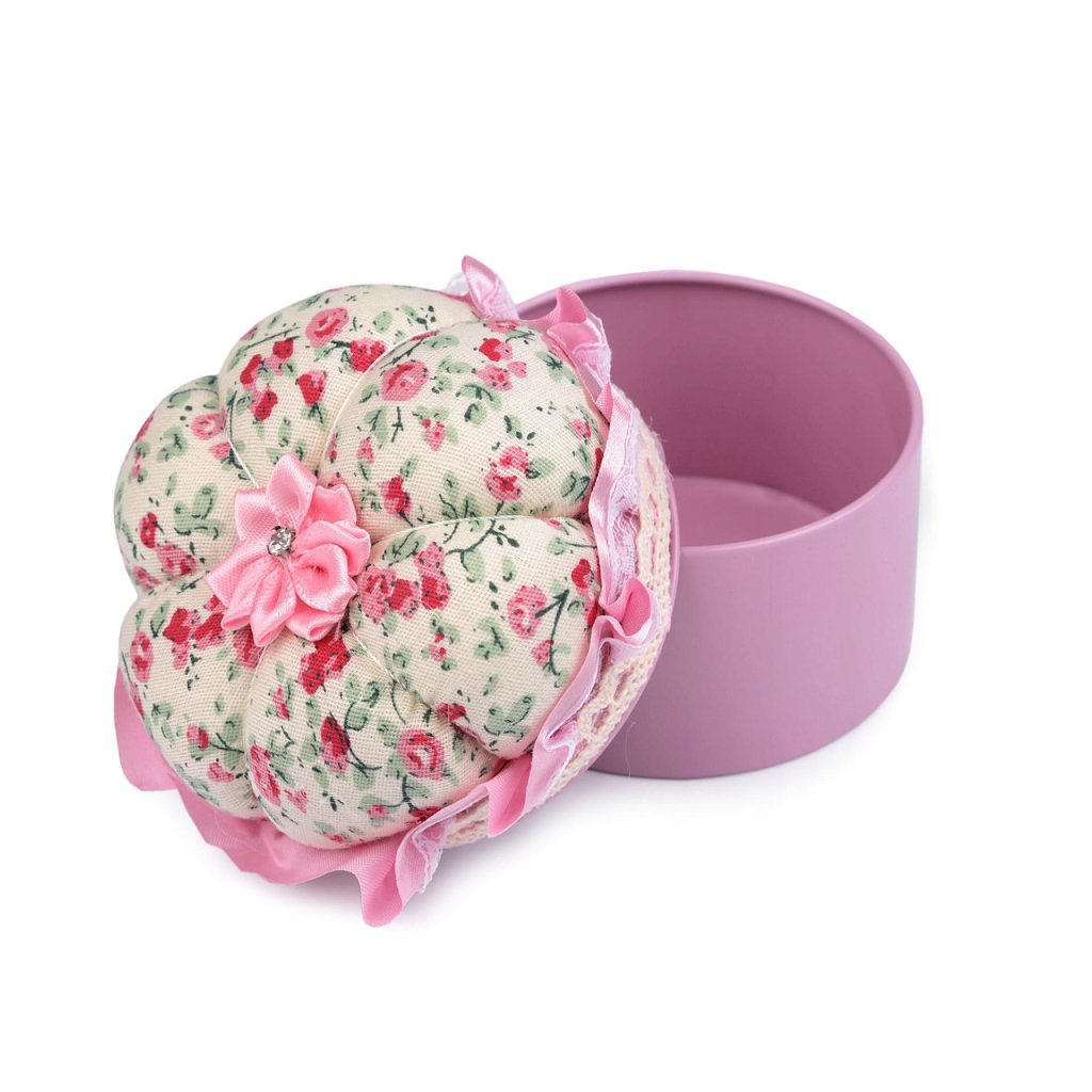 Jehelníček má podobu kovové dózy, do které hravě schováte nějaké drobnosti, které potřebujete k šití - knoflíky, spínací špendlíky, náprstek, krejčovský metr apod.