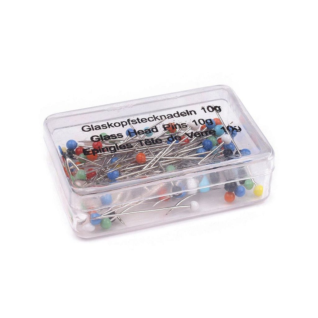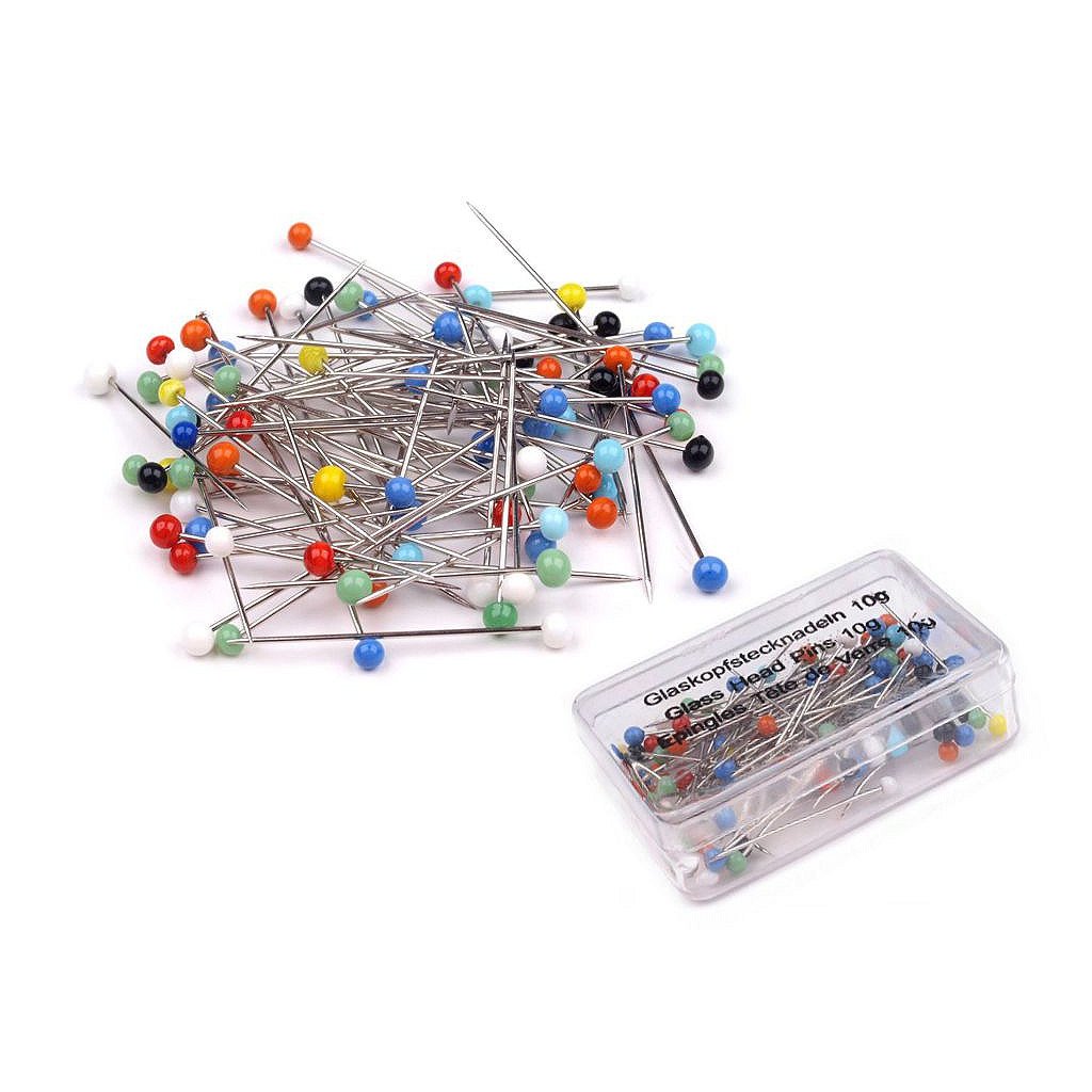 Špendlíky se skleněnou hlavičkou jsou dobře vidět, pohodlně se zapichují a drží v prstech. Nelámou se a jsou mírně ohebné oproti celokovovým špendlíkům. Využijete při krejčovské činnosti i v kanceláři.