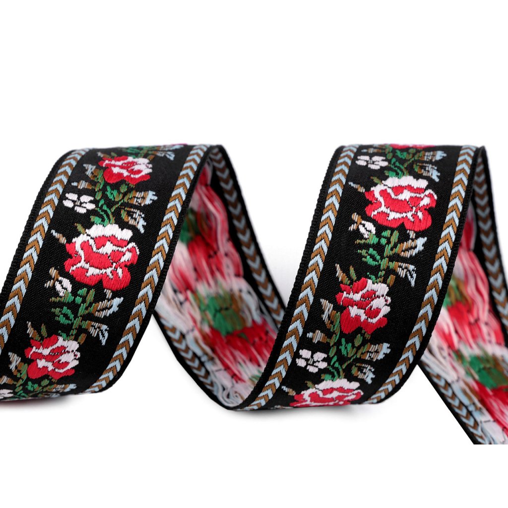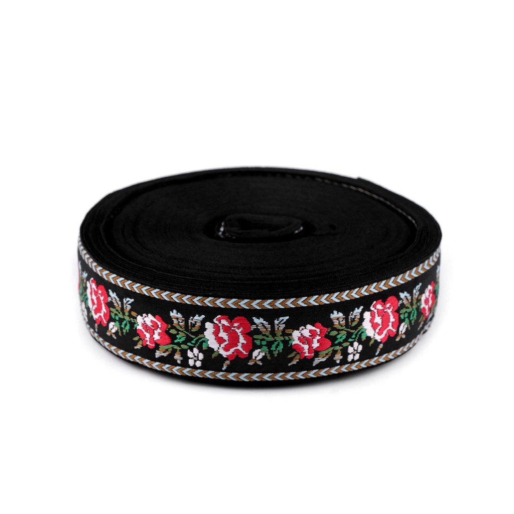 Krojová vzorovka je ozdobená motivem růží. Je pevná, můžete ji použít nejen ke zdobení krojů, ale i běžných a slavnostních oděvů, prádla a bytových textilií. Její použití je velice variabilní.