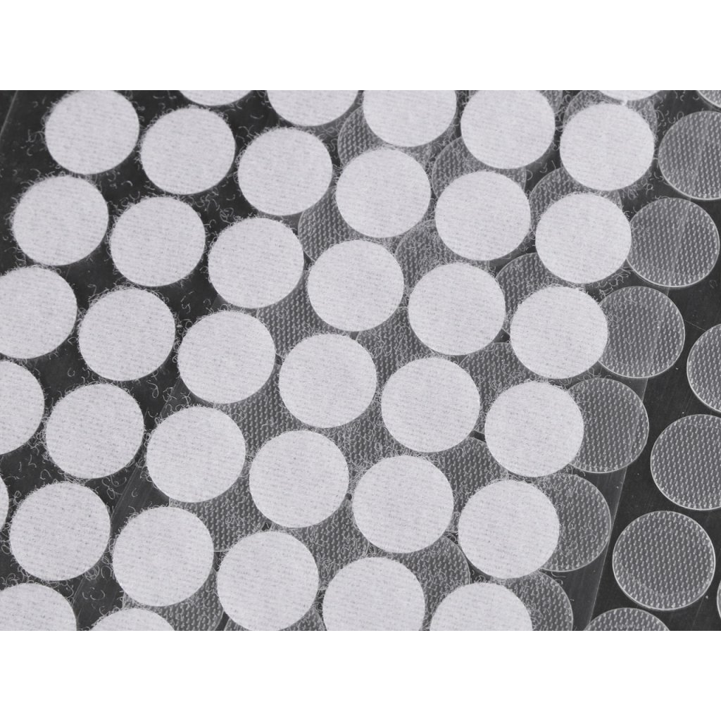 Suchý zip ve tvaru koleček slouží ke spojení různých materiálů. Je samolepicí, tudíž ho bez větších obtíží připevníte. Můžete jím připevnit reklamu, nápisy, obrázky apod. Využijí ho i maminky, které propadly výrobě quiet booku pro děti.
