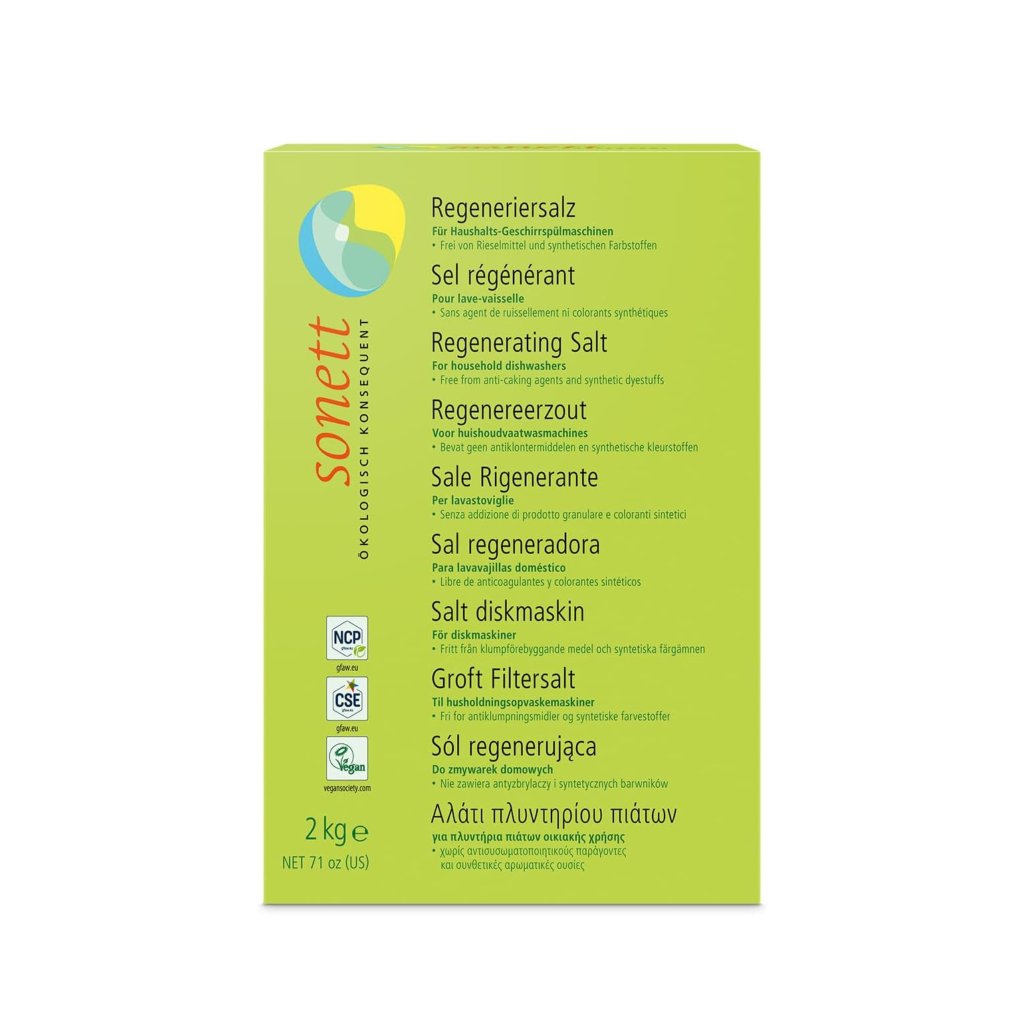 Regenerační sůl od Sonettu je zcela čistá, krystalická a bez přídavků protispékavých látek, syntetických barviv či jiných látek. Je nedílnou součástí mycího procesu v každé myčce - zabraňuje usazování vodního kamene na skleničkách a příborech.