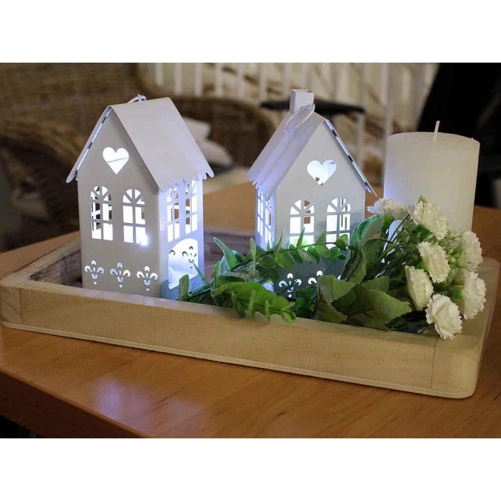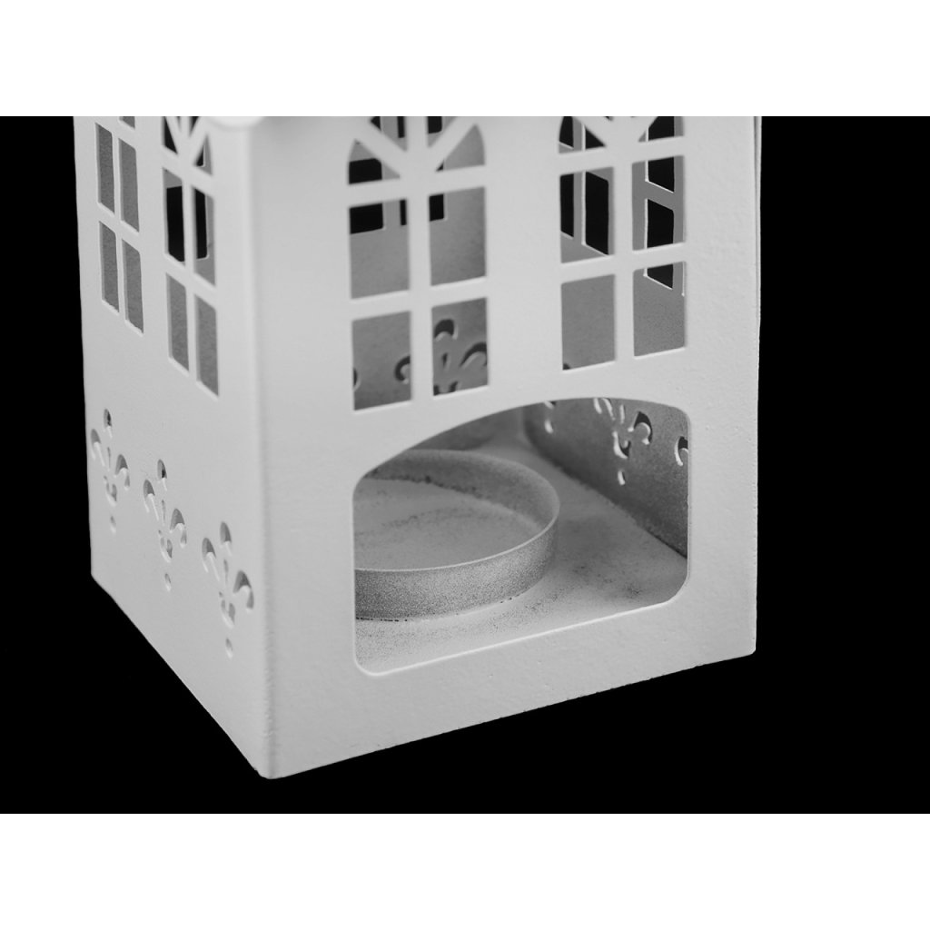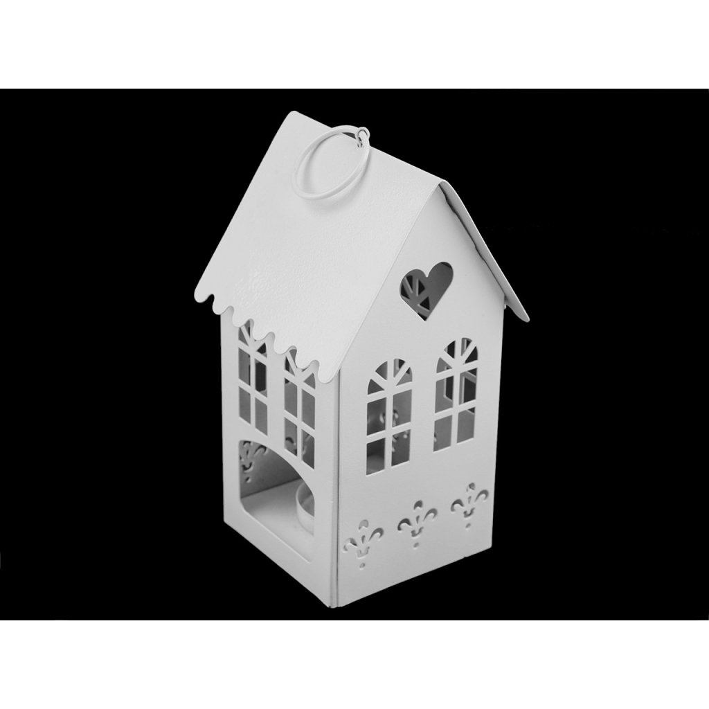 Kovový svícen ve tvaru domečku na klasické čajové nebo LED čajové svíčky doslova rozzáří a zútulní váš domov. Má v sobě výřezy, které zaručují při hoření svíčky zajímavý efekt. Domeček můžete také pověsit za kovové poutko. Využijete ho celoročně, i při venkovním posezení.