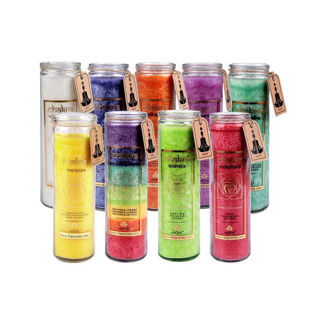 Vonná čakrová svíčka ve skleněné dóze vám doma vykouzlí pohodovou atmosféru, nádherně provoní interiér a zharmonizuje život a duševní pohodu. Vydrží hořet až 100 hodin.