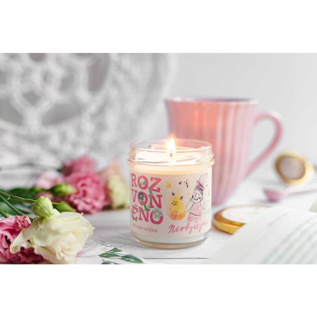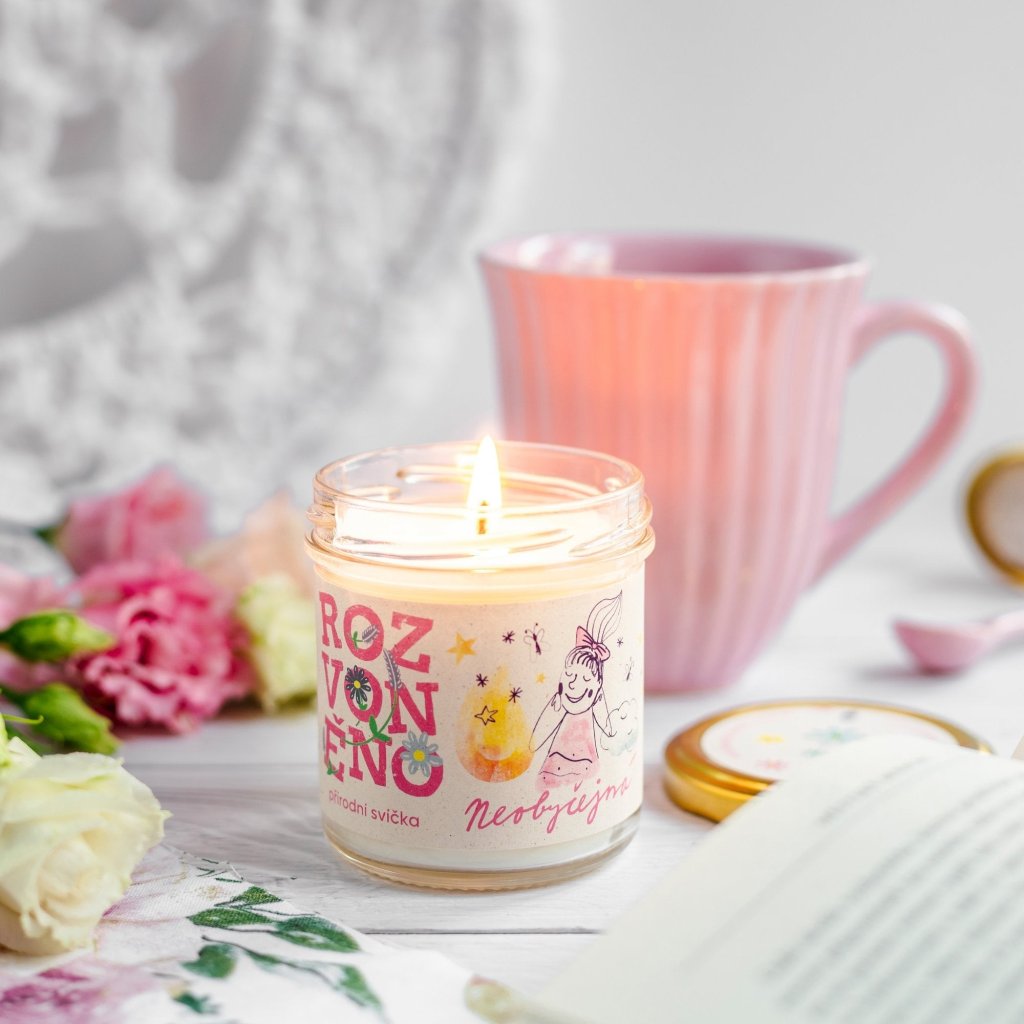 Ručně vyrobená 100% přírodní svíčka s kokosovo-sójovým voskem, knotem ze 100% bavlny a zcela bez éterických olejů. Obyčejně Neobyčejná je jako stvořená pro milovníky mihotavých světel bez doprovodných vůní. Stejně jako ostatní svíce z Rozvoněno neobsahuje ani kapičku palmového oleje, živočišných látek nebo syntetických ingrediencí. Ve srovnání s parafínovými svíčkami hoří až o polovinu déle (vydrží až 25 hodin) a nešíří kolem sebe škodlivé látky. Je 100% biologicky odbouratelná. V Rozvoněno věří v upcyklaci - velmi často využívají již použité sklenky, které oblékají do fešáckých kabátků, a vše uzpůsobují tomu, aby dokonale posloužily i po vyhoření svíčky.