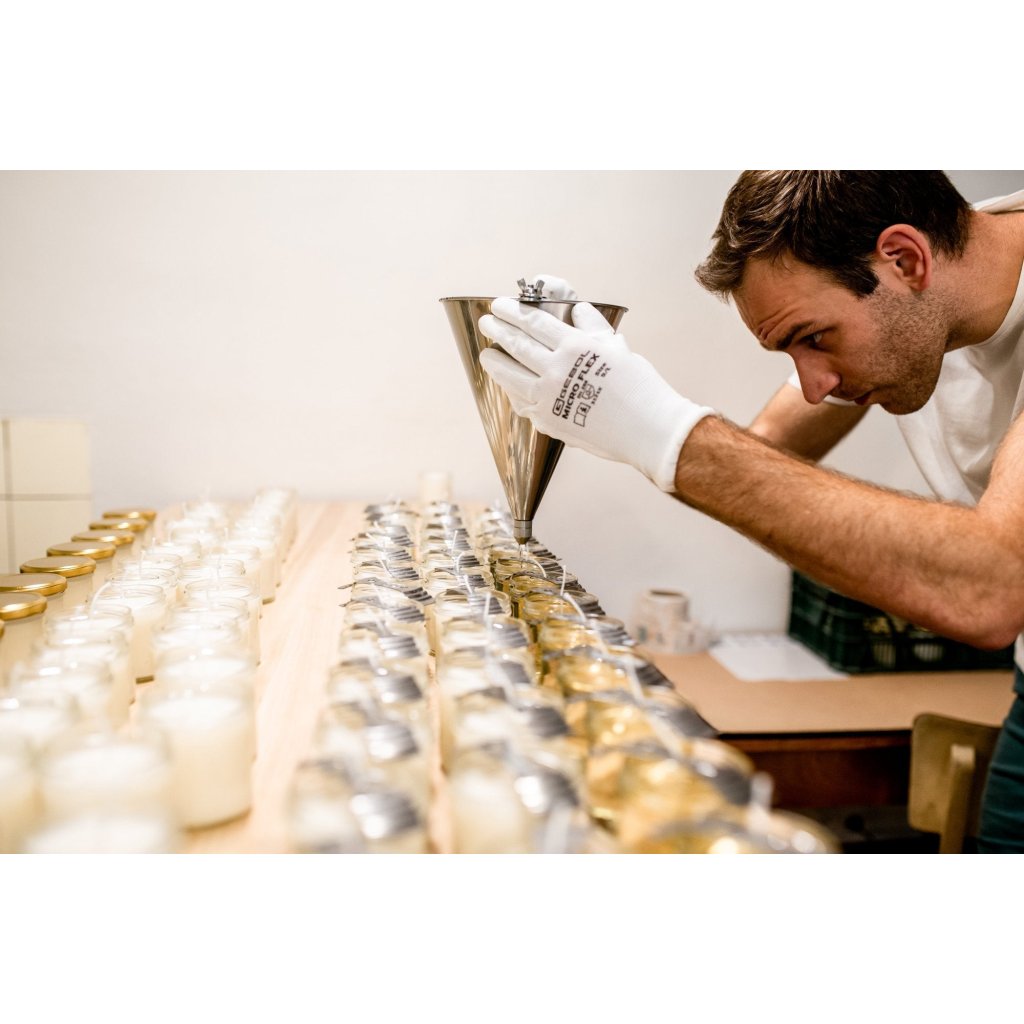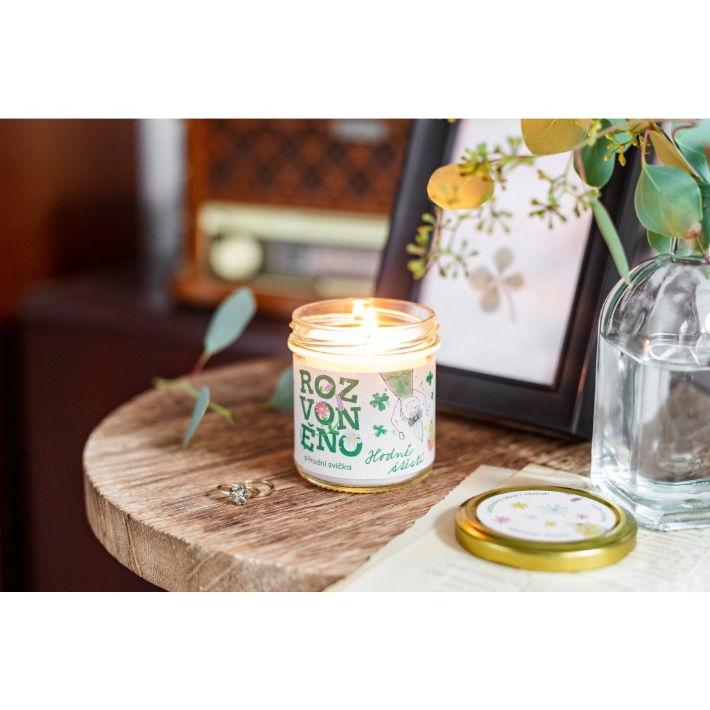 Ručně vyrobená 100% přírodní svíčka s kokosovým a sójovým voskem a knotem ze 100% bavlny patří k těm výraznějším (stupeň 3). Éterické oleje ze středozemních bylinek, rozmarýnu a levandule harmonizují emoce, zklidňují a nabíjejí zároveň. Svíce neobsahuje ani kapku palmového oleje, živočišných látek nebo syntetických ingrediencí. Ve srovnání s parafínovými svíčkami hoří až o polovinu déle (až 25 hodin), nešíří kolem sebe škodlivé látky a je 100% biologicky odbouratelná. V Rozvoněno věří v upcyklaci - často využívají již použité skleničky, které oblékají do fešáckých kabátků, a vše uzpůsobují tomu, aby dokonale posloužily i po vyhoření svíčky.