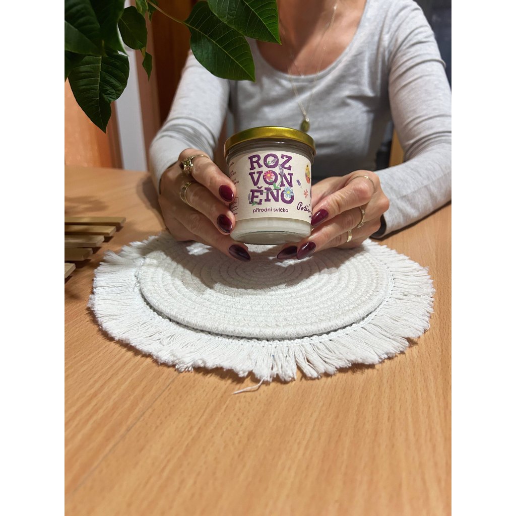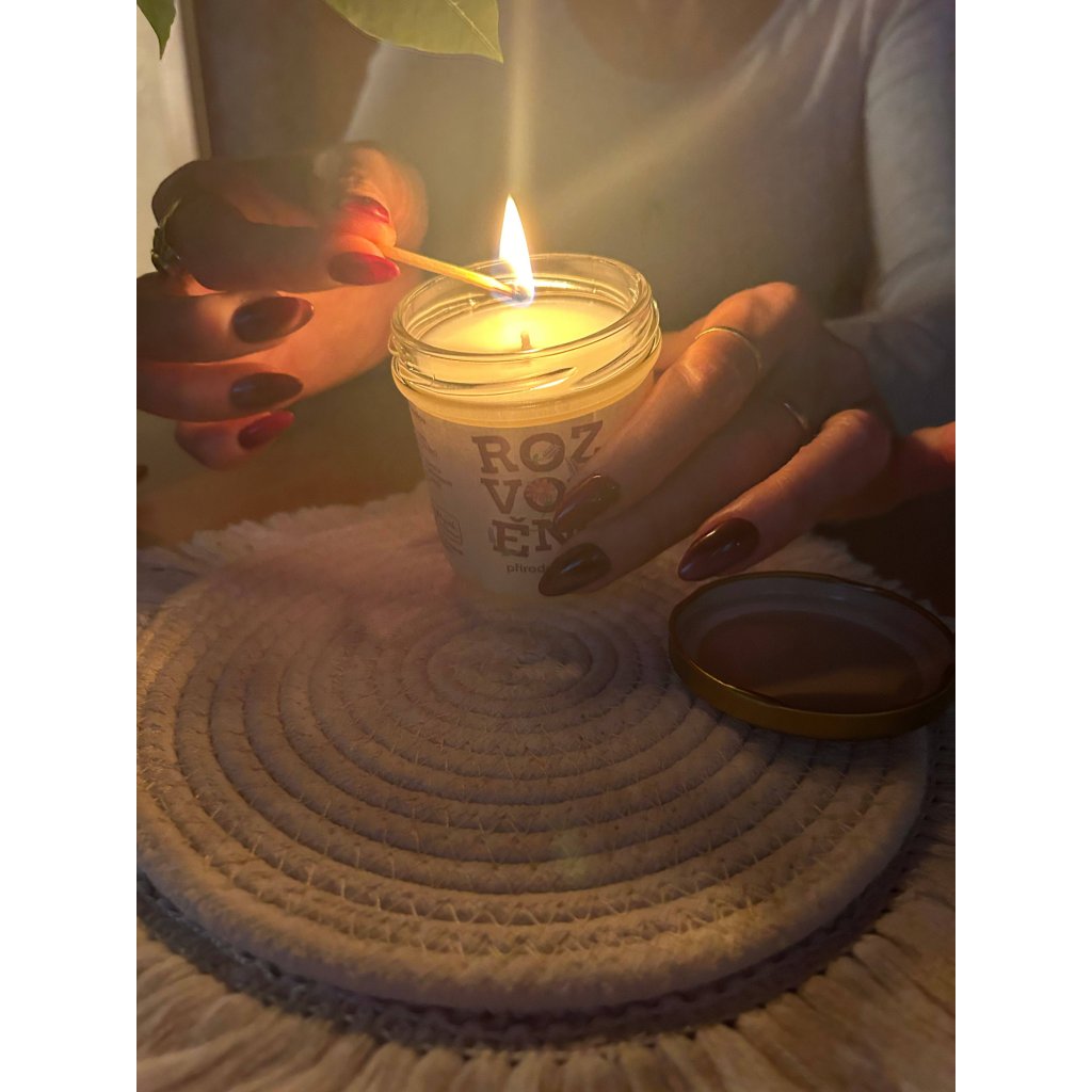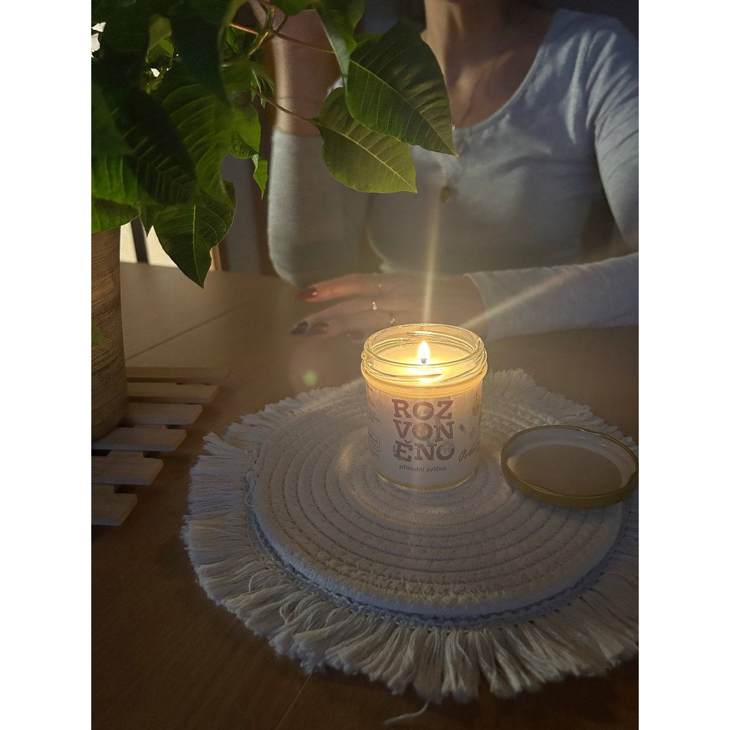 Ručně vyrobená 100% přírodní svíčka s kokosovo-sójovým voskem a knotem ze 100% bavlny patří k těm jemnějším (stupeň 1). Bylinkové kombo BIO levandule a citronové trávy posílí vaši psychiku a podpoří dobrou náladu. Pokud ve svém okolí zaznamenáte minimální výskyt obtížného hmyzu, vězte, že za to vděčíte právě citronové trávě, jejíž vůni tito nevítaní návštěvníci nijak neoblibují. Svíce neobsahuje ani kapku palmového oleje, živočišných látek nebo syntetických ingrediencí. Ve srovnání s parafínovými svíčkami hoří až o polovinu déle (až 25 hodin), nešíří kolem sebe škodlivé látky a je 100% biologicky odbouratelná. V Rozvoněno věří v upcyklaci - často využívají již použité skleničky, které oblékají do fešáckých kabátků, a vše uzpůsobují tomu, aby dokonale posloužily i po vyhoření svíčky.