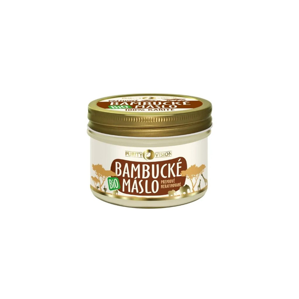 Bambucké máslo je univerzální malý zázrak, který zvládne každou situaci. Je vysoce vyživující, pečující a je plné vitamínů a minerálů. BIO bambucké máslo od Purity Vision představuje nejčistší podobu bambuckého másla na mezinárodním trhu a je 100% BIO, nerafinované a 100% čisté. Má úžasnou krémovou konzistenci, díky které se snadno nanáší, a příjemnou oříškovou vůni. Skvěle se hodí pro péči o obličej, tělo i vlasy a jako lék na drobné ranky.