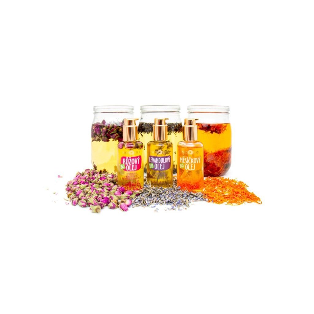 Univerzální měsíčkový olej přináší tu nejjemnější péči pro citlivou pokožku dospělých i miminek. Vznikl pozvolným macerováním čerstvých květů měsíčku lékařského v BIO olejích, za studena lisovaných - konkrétně slunečnicovém, arganovém a jojobovém. Šetrně opečuje citlivou pokožku celého těla a postará se i o pleť obličeje. Nemá výraznou vůni, masáže i relaxační koupele si s ním tak užijí i osoby s citlivými nosy.