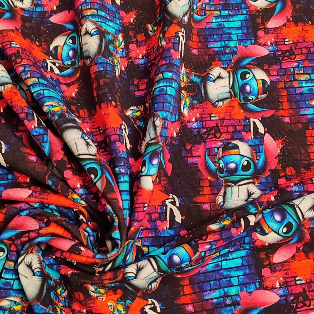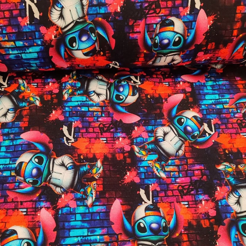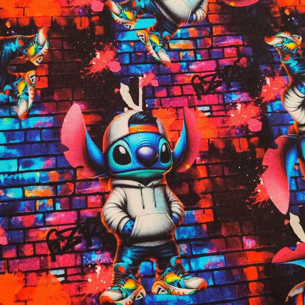Teplákovina Stitch je nádherná nepodčesaná teplákovina (French Terry) s veselým designem, který rozzáří každý šicí projekt. Motiv oblíbené postavičky Stitch na moderním a cool pozadí přináší radost a barvy do každého dne!