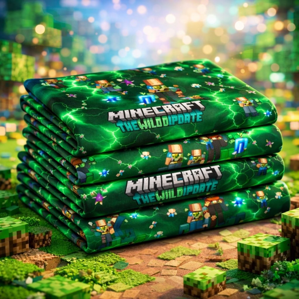 Tato bavlněná teplákovina s motivem Minecraft je skvělou volbou pro všechny fanoušky této ikonické hry. Výrazný potisk s herními postavami a logem Minecraft v dynamickém zeleném provedení působí akčně, hravě a zaručeně zaujme na první pohled. Syté barvy krásně vynikají na tmavším podkladu a dodávají látce moderní herní vzhled.