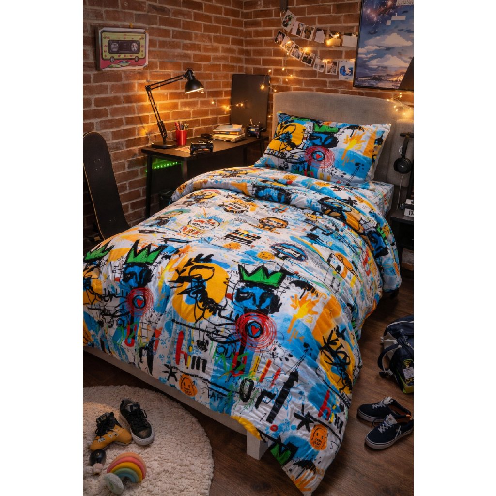 Hledáte látku, která zaručeně přitáhne pozornost? Street Art Explosion je nepočesaná teplákovina s nepřehlédnutelným designem inspirovaným pouličním uměním. Výrazné barvy, grafické motivy, nápisy, královské koruny, komiksové postavičky a nádech rebelie – tahle látka je jako výbuch kreativity!