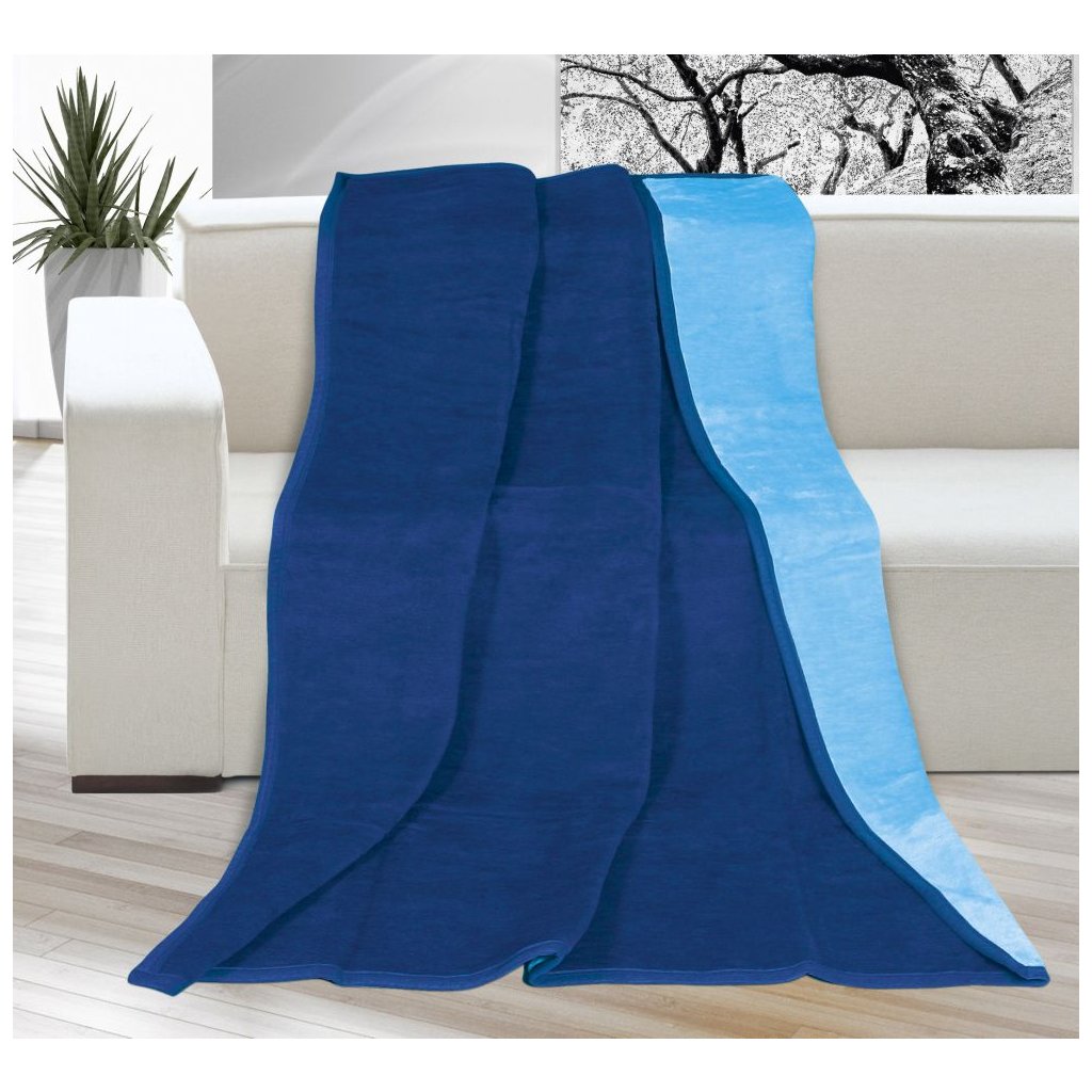 Deka jednobarevná 150x200cm tmavě modrá / světle modrá