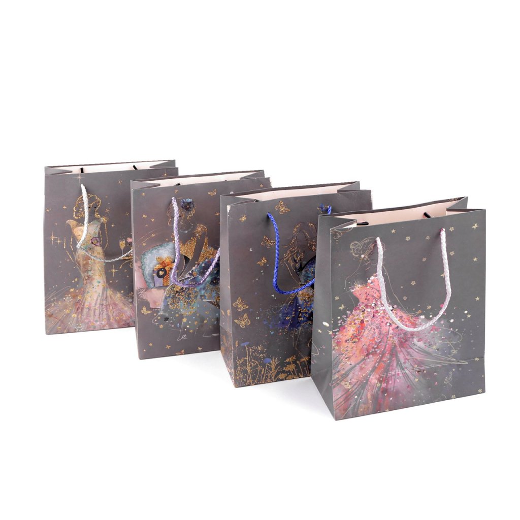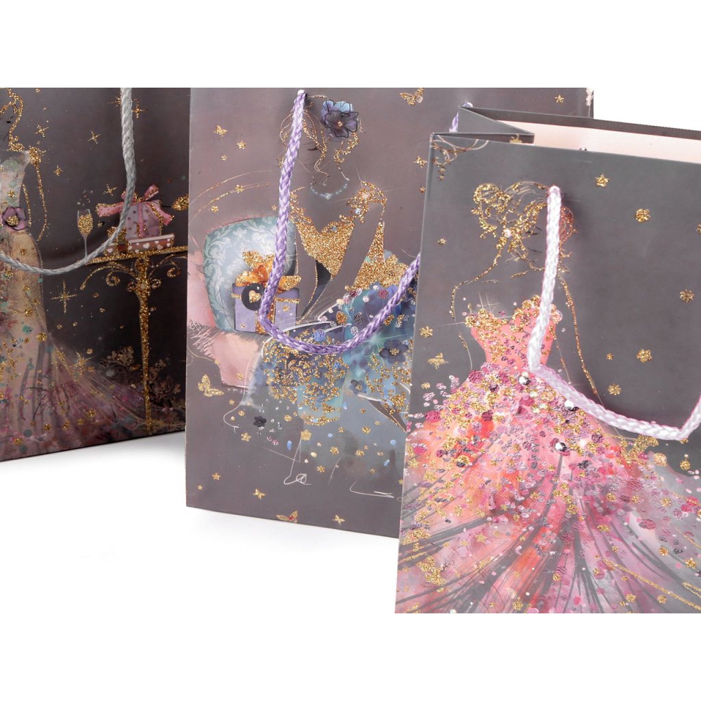Dárková taška se siluetou dívky je díky glitrů na přední straně velice efektní. Je ideální pro všechny, kteří chtějí rychle zabalit dárek. Je vyrobená z kvalitního křídového papíru, potisk je z obou stran. Ucha tašky jsou ze spletené šňůry.