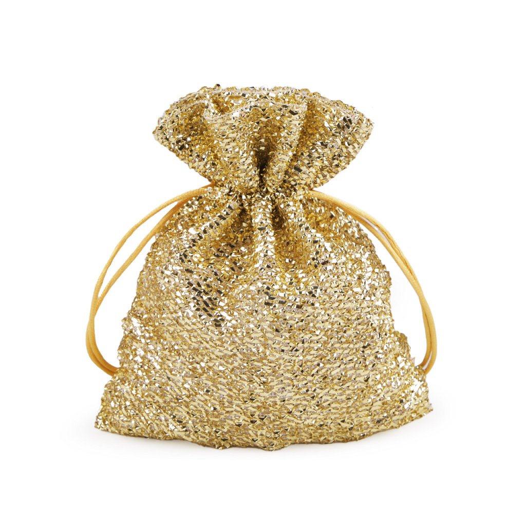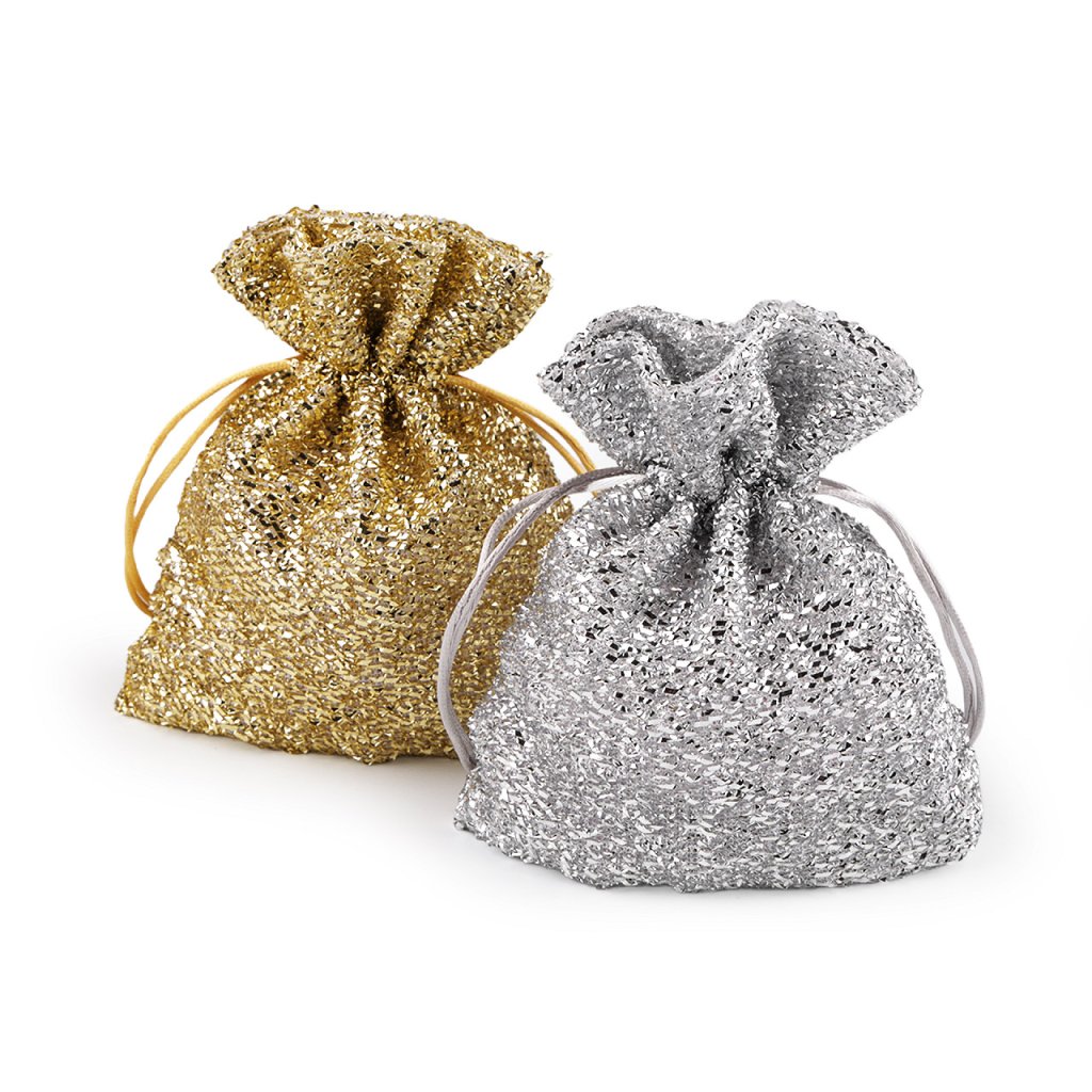 Dárkový pytlík s hrubou lurexovou strukturou má kvalitní provedení, působí elegantně a luxusně. Stahuje se pomocí kulatých saténových šňůrek. Do pytlíku můžete schovat menší dárky k různým příležitostem jako je např. svatba, narozeniny, výročí, vánoce atd. Třpytivý pytlík je originální způsob, jak zabalit dárek a povýšit jej na vyšší úroveň.