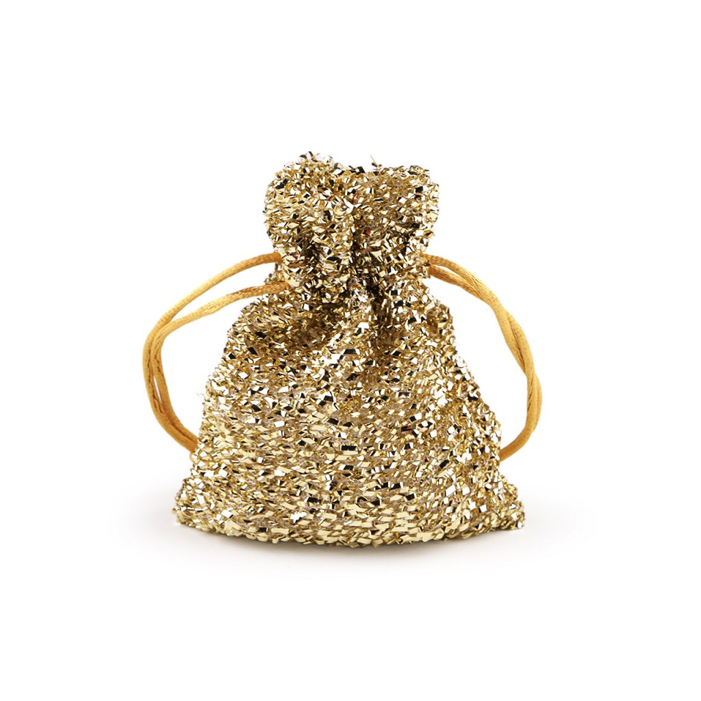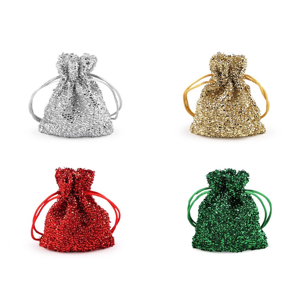 Malý dárkový pytlíček má kvalitní provedení. Povrch má hrubou lurexovou strukturu, která působí elegantně a luxusně. Stahuje se pomocí kulaté saténové šňůrky. Do pytlíku můžete schovat malé dárky k různým příležitostem jako je např. svatba, narozeniny, výročí, vánoce atd. Třpytivý pytlík je originální způsob, jak zabalit dárek a povýšit jej na vyšší úroveň.