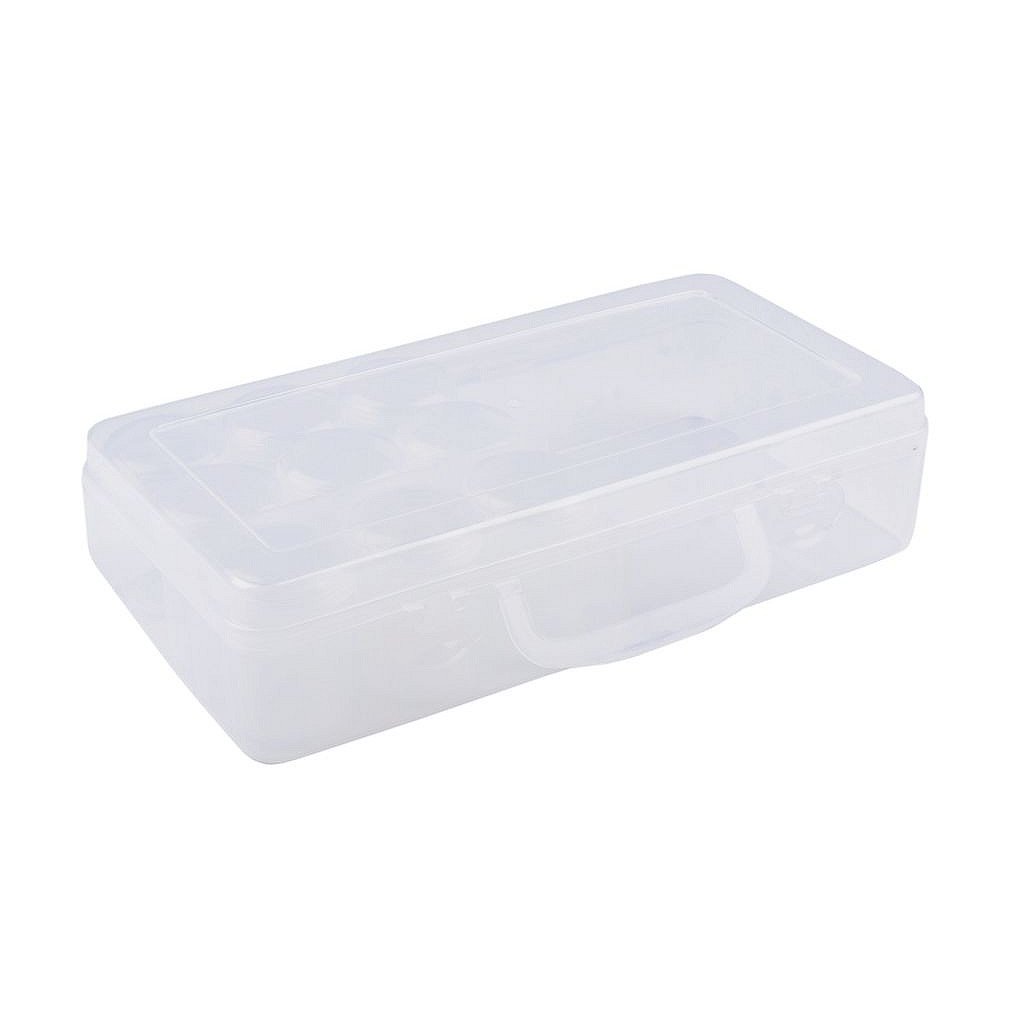 V 1/2 boxu je 9 plastových šroubovacích dóz, oddělené přepážkami druhá půlka je prázdná. Můžete dát dózy do volné půlky a rázem máte 4 boxy na větší potřeby, protože víko nedoléhá těsně na přepážky.Velikost jedné šroubovací dózičky je: výška 60mm a šířka 40mm.