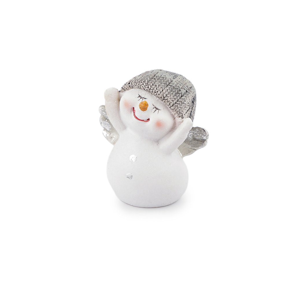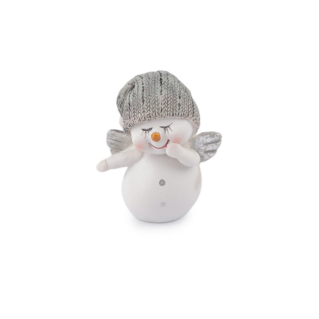 Figurka sněhuláka působí roztomile. Vynikne zakomponovaná ve vánočních a zimních aranžmá, na dekoračních věncích apod. Má metalické detaily.