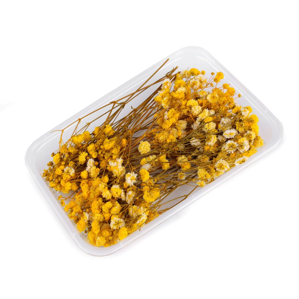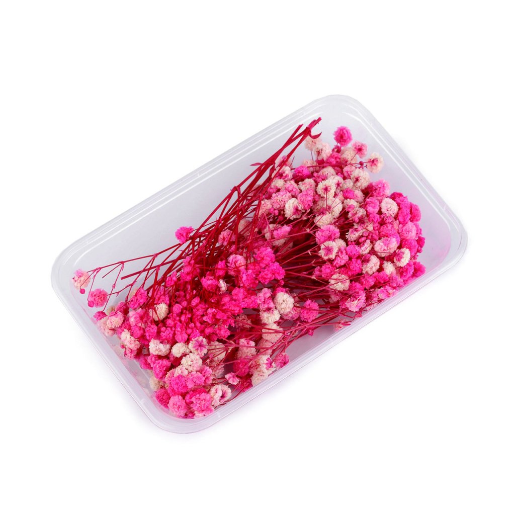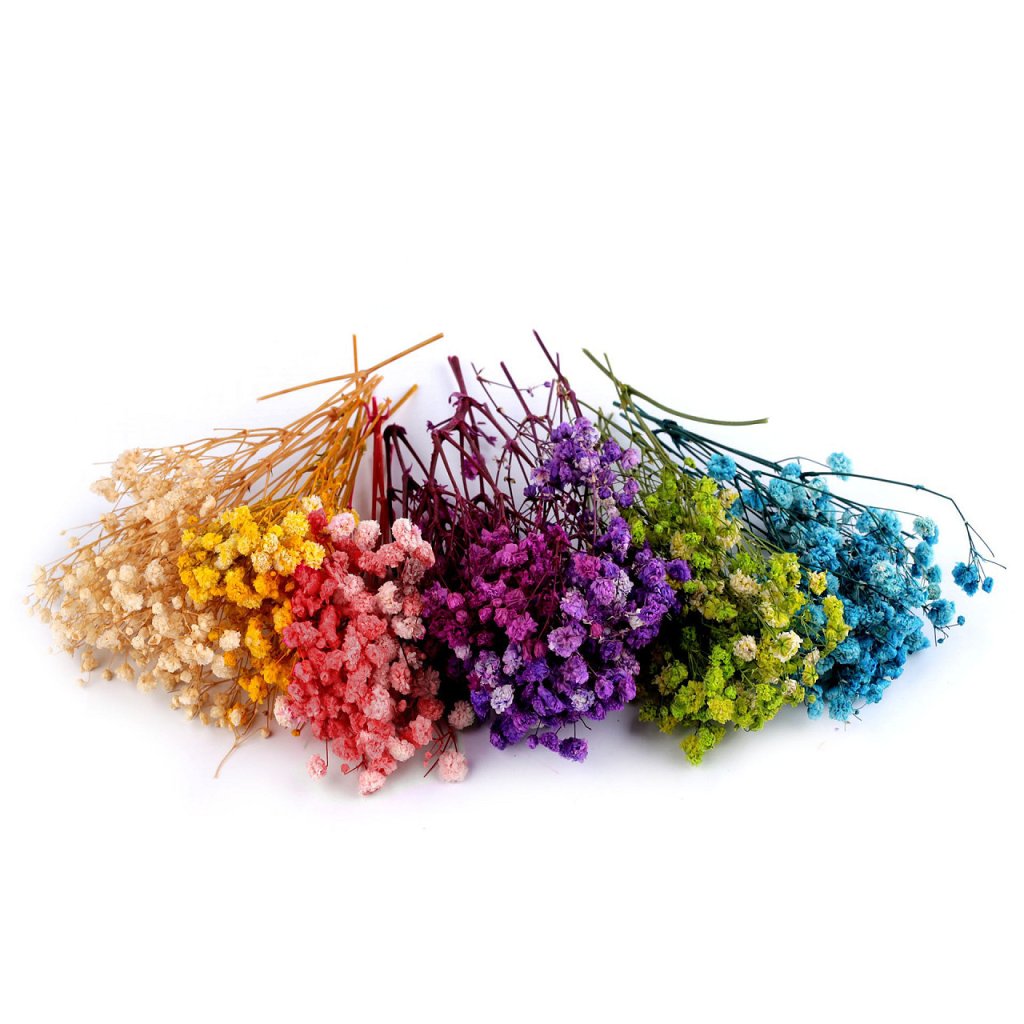 Sušené / stabilizované květy drobného šateru působí jemně a křehce. Dekoracím dodají romantický nádech, především těm svatebním. Využijete je na různá aranžmá, ikebany, sušené vazby, voničky, ale můžete je zakomponovat i do dárkových balení, třeba ke kosmetice či svíčkám. Jsou vhodné na suché i mokré aranžování.